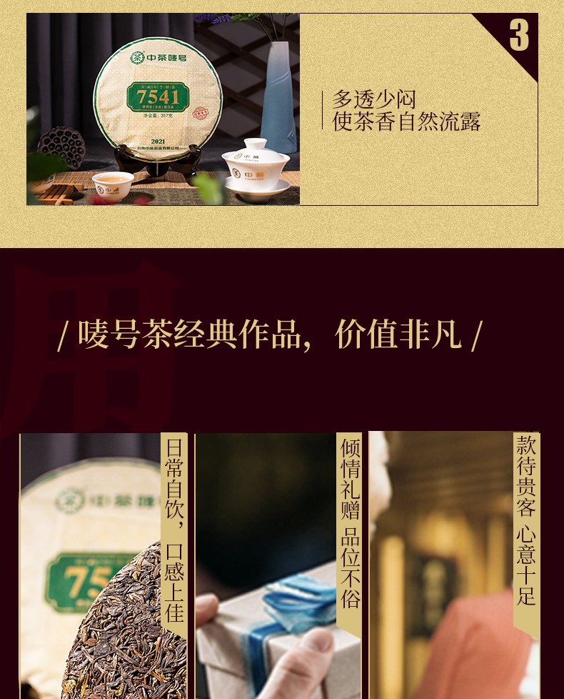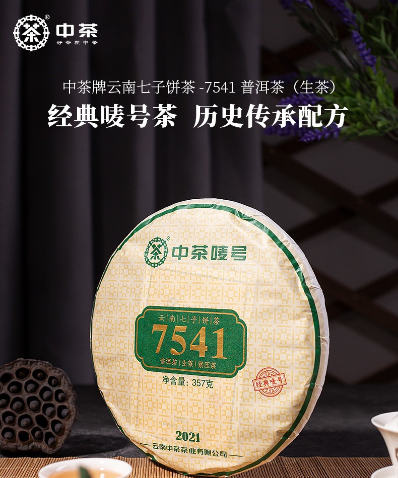 中粮-中茶 普洱茶2021(生茶 )云南勐海七子饼经典7541普洱生茶饼357g /云南干仓直发