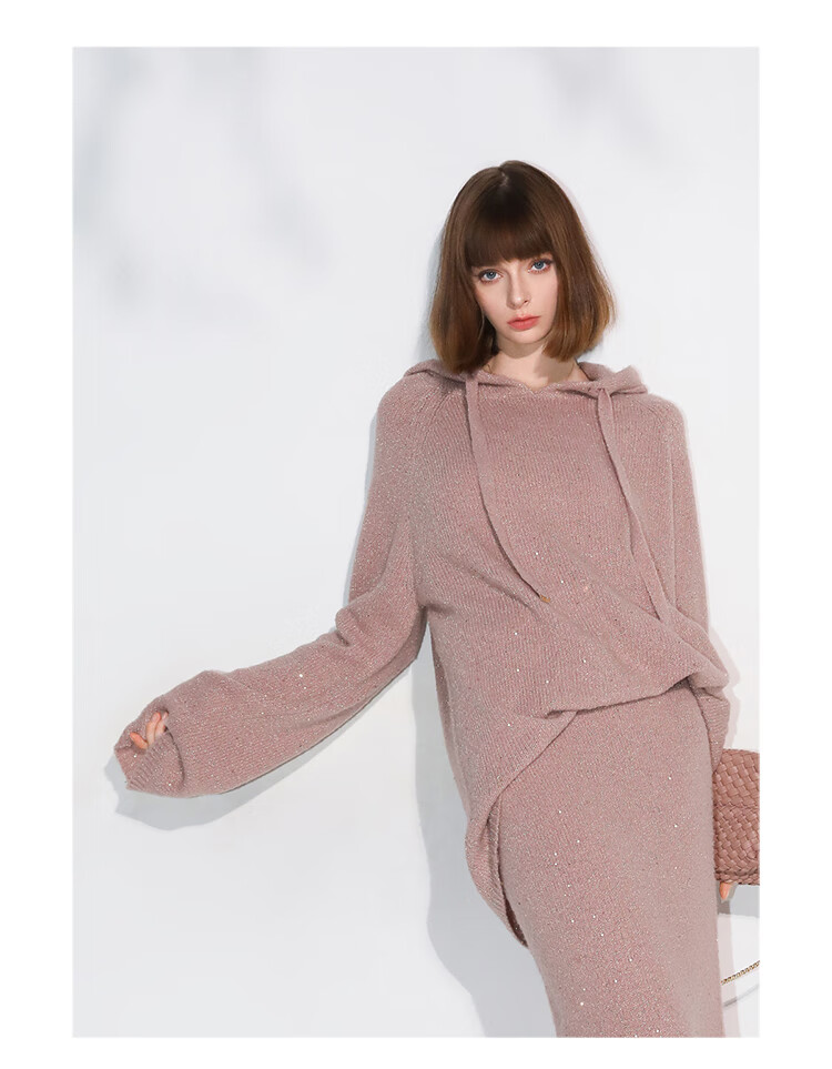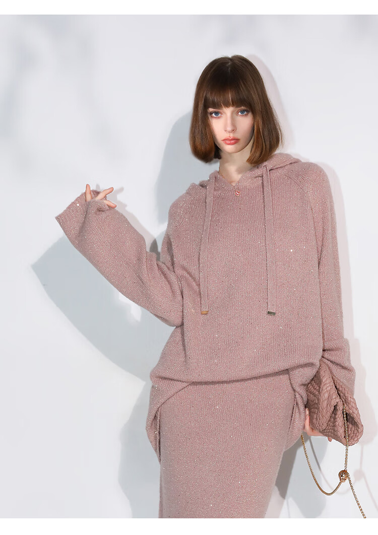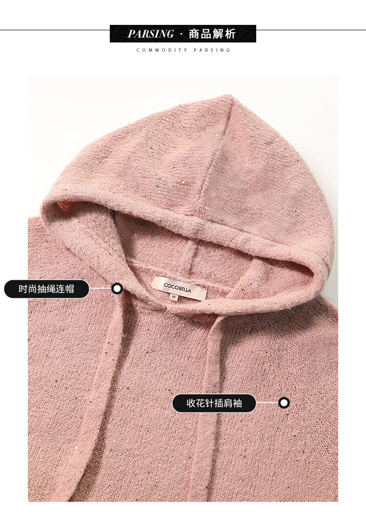 COCOBELLA[璀璨星河]细闪亮片气质针织毛衣秋软糯帽衫MZ3107