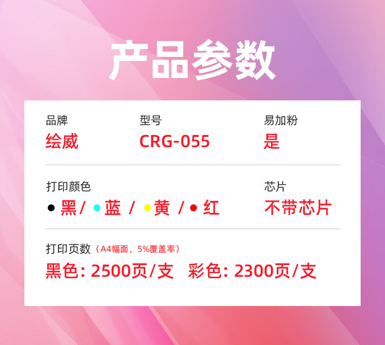 绘威CRG-055H硒鼓、CRG-055易加粉硒鼓无芯片 适用佳能LBP663Cdw LBP663Cdn LBP664Cx MF742Cdw MF746Cx打印机墨粉盒