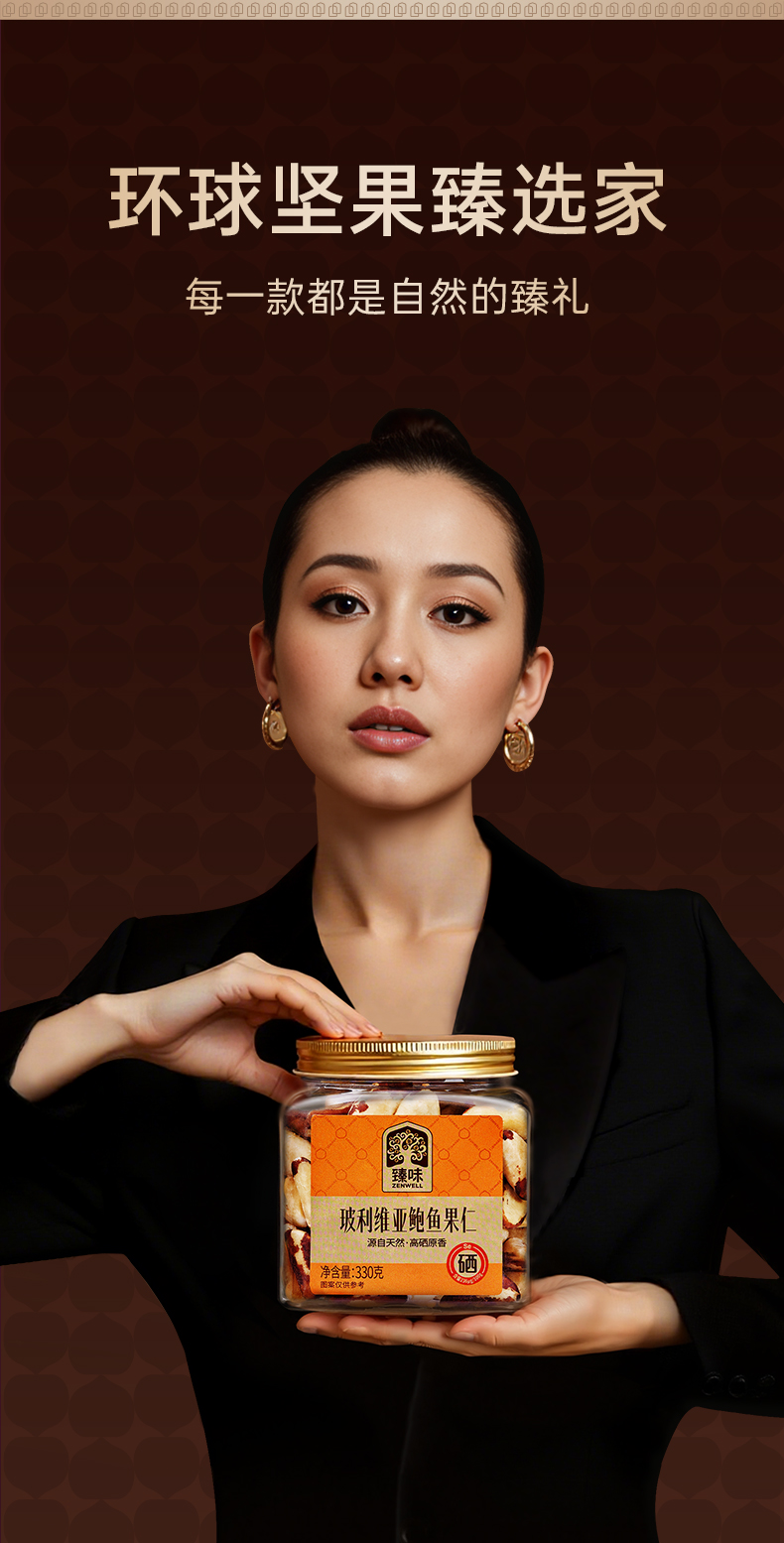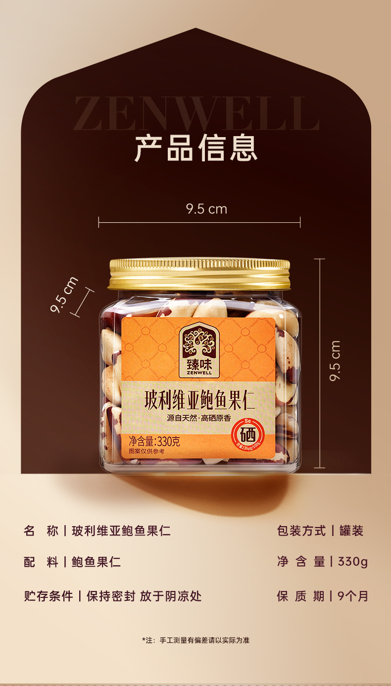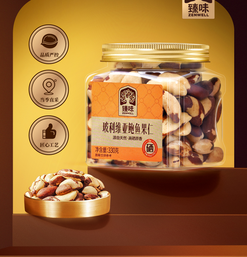 巴西坚果仁玻利维亚鲍鱼果仁 进口原料原味孕妇坚果零食330g/瓶【京东快递送货上门】