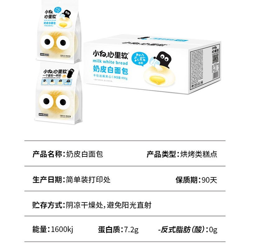 【自营】小白心里软 奶白皮面包 原味/红豆450g