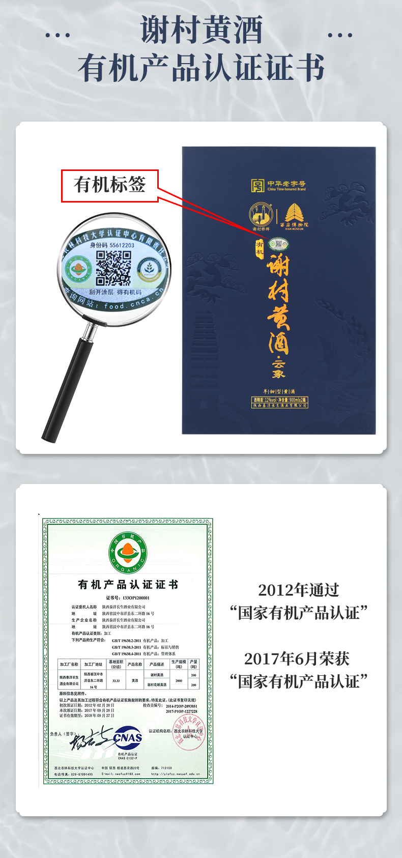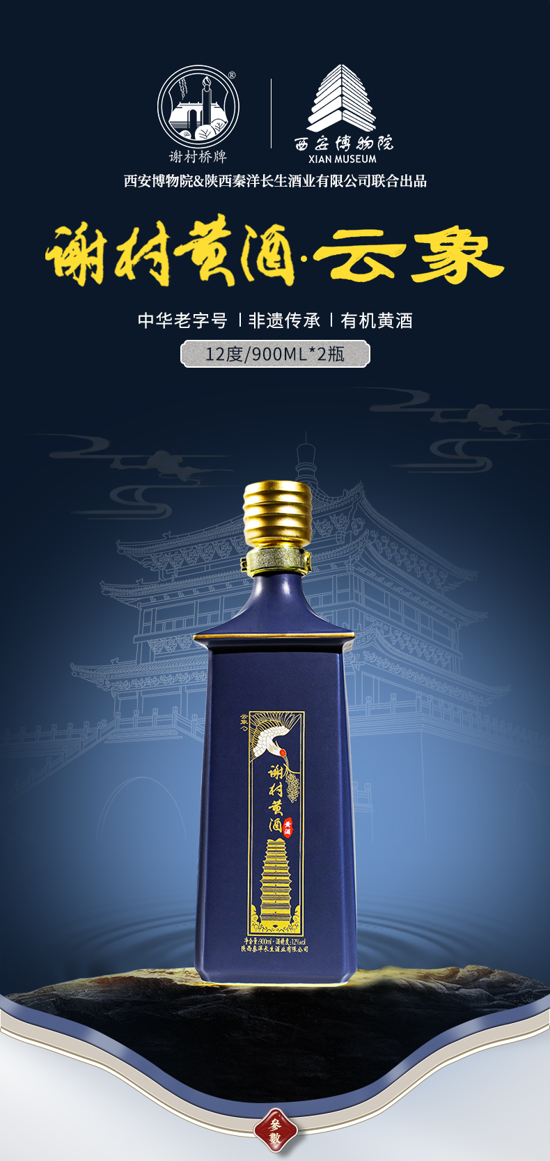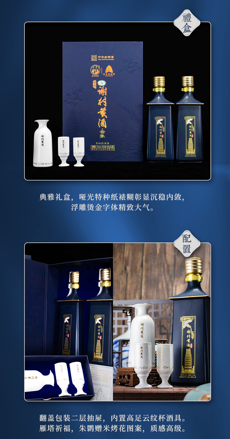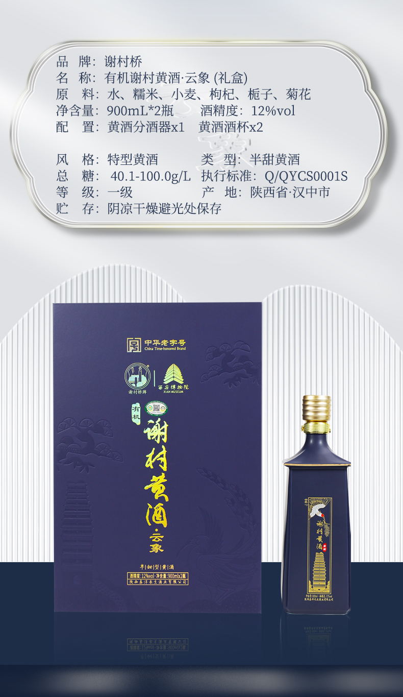 “谢村桥”牌 有机谢村黄酒云象礼盒高端黄酒900ml*2/盒