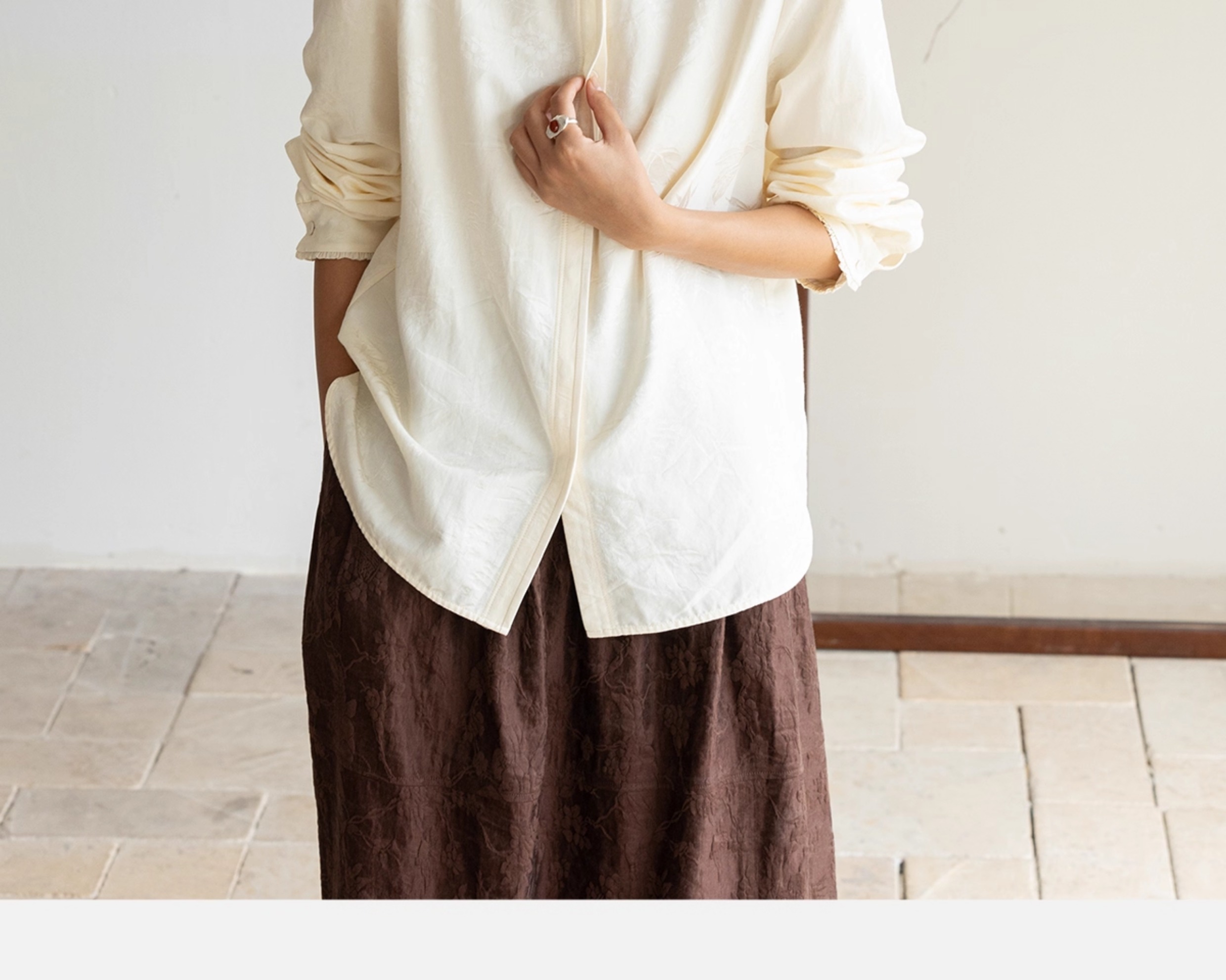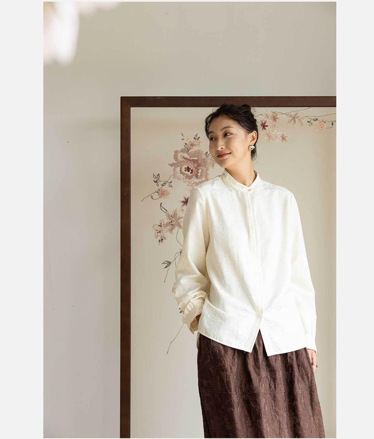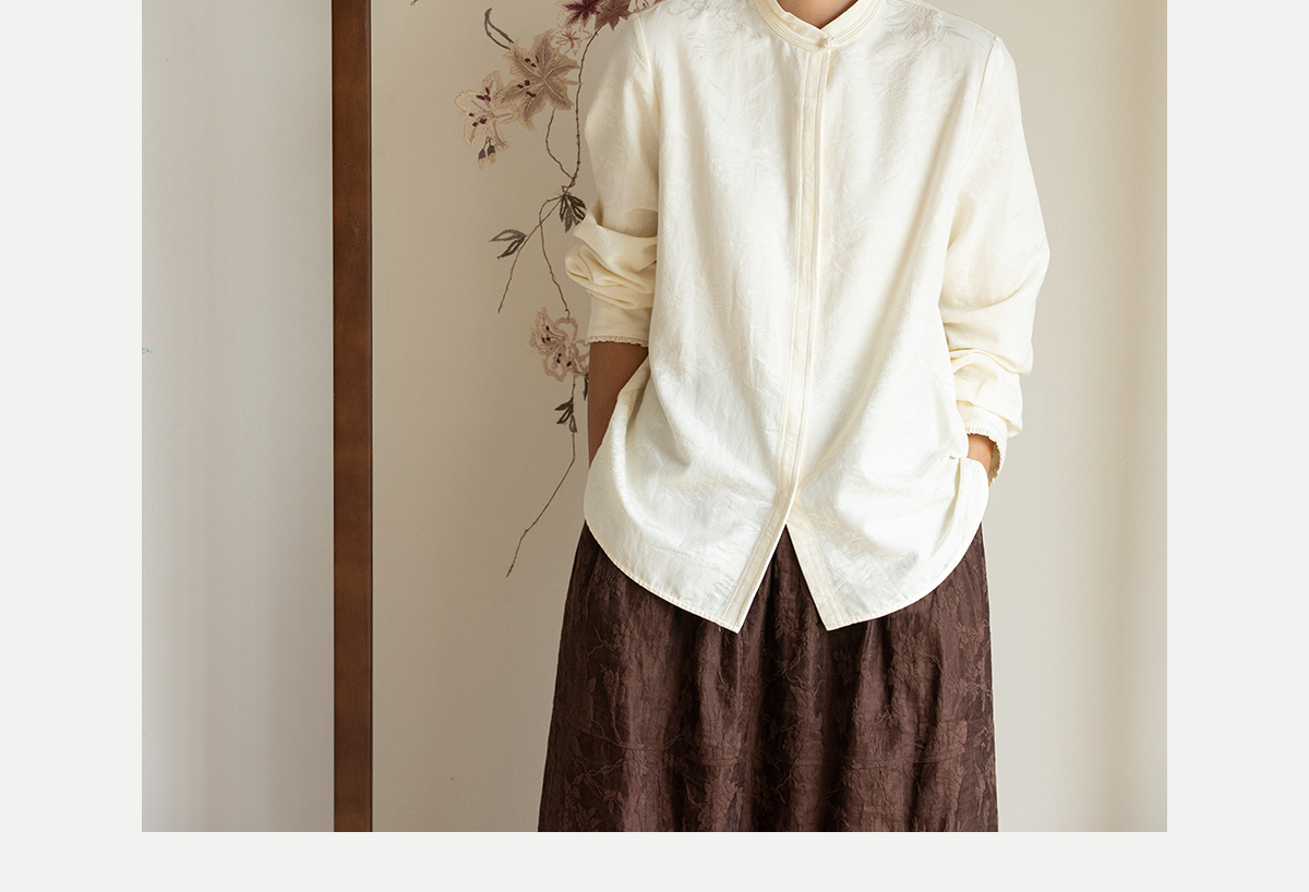 牧衣游原创重磅28姆米提花丝棉衬衫通勤简约百搭保暖衬衣 古尔