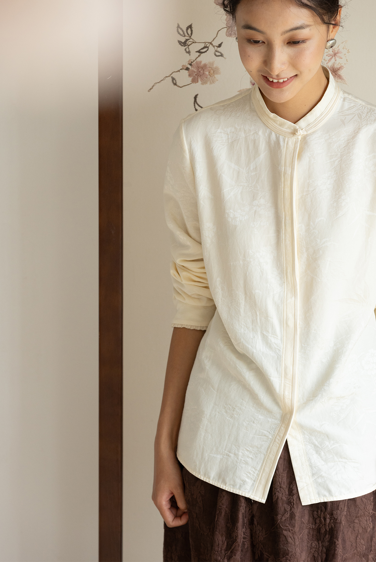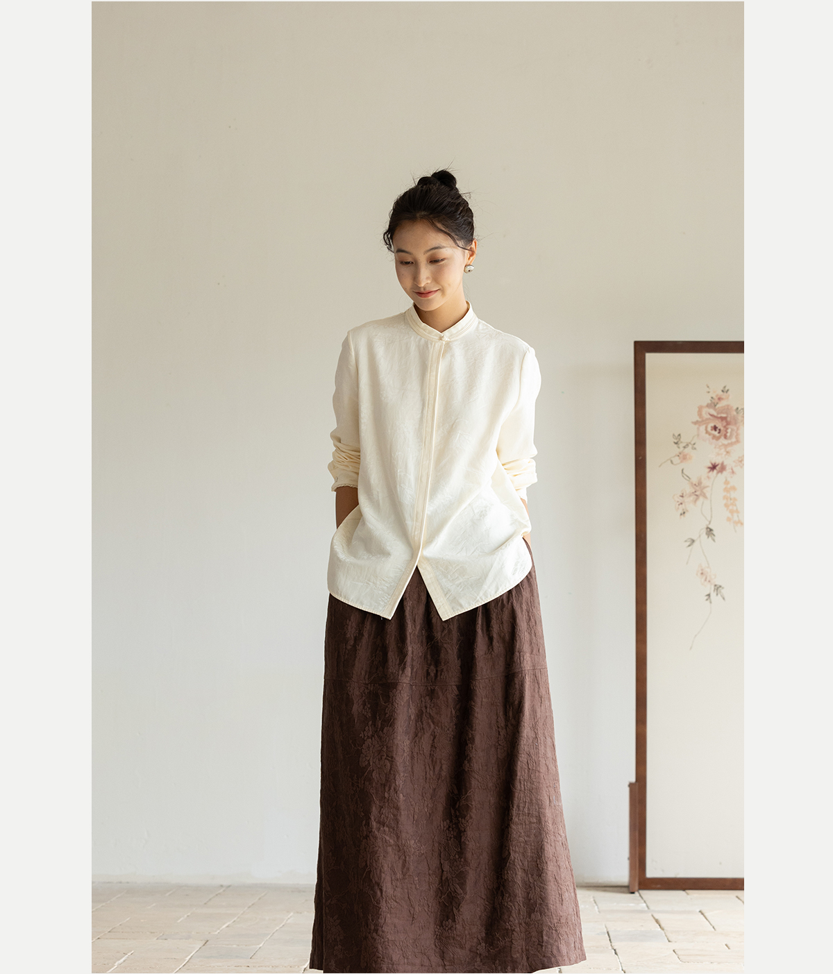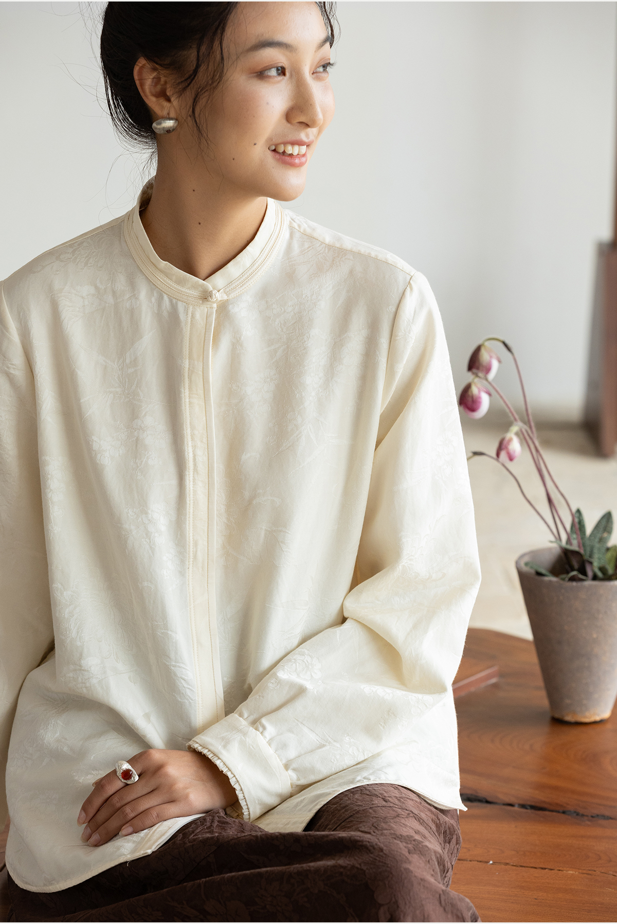牧衣游原创重磅28姆米提花丝棉衬衫通勤简约百搭保暖衬衣 古尔