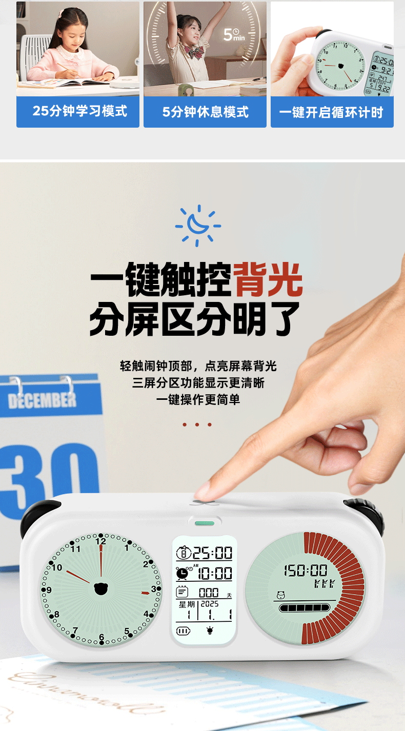 【学习好物丨UNISUN时间管理器系列】时钟+计时2合1专为学生设计,提高孩子学习效率 ,培养孩子自主能力,助力冲刺考试,提高学习进度,定时不繁琐 一键旋钮轻松计时