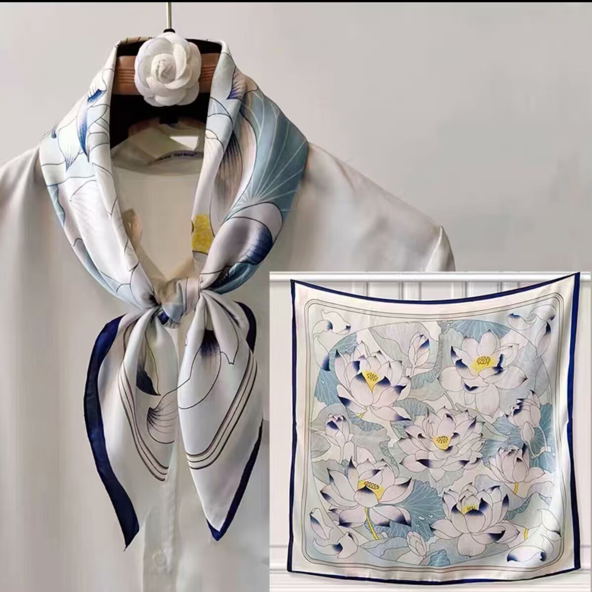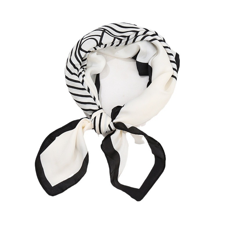 韩系时尚百搭职业仿真丝小领巾 优雅百搭 丝巾方巾高级感 复古印花丝巾女