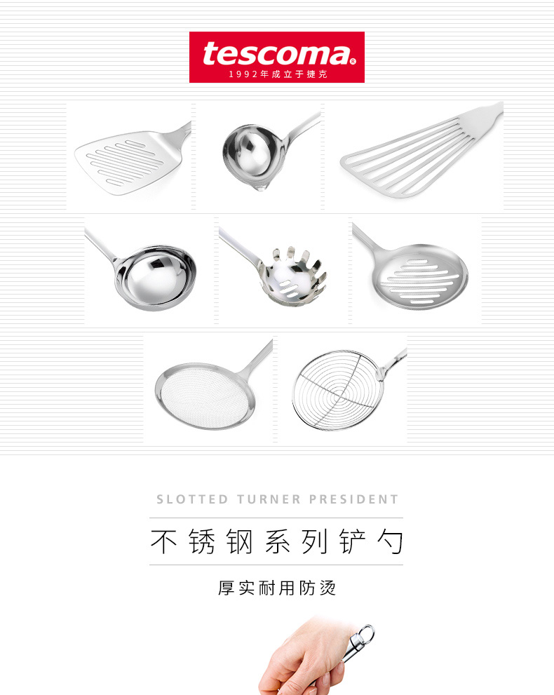 捷克tescoma PRESIDENT系列不锈钢家用加厚防烫炒菜 中式锅铲【不支持补差,非质量问题不退不换】S