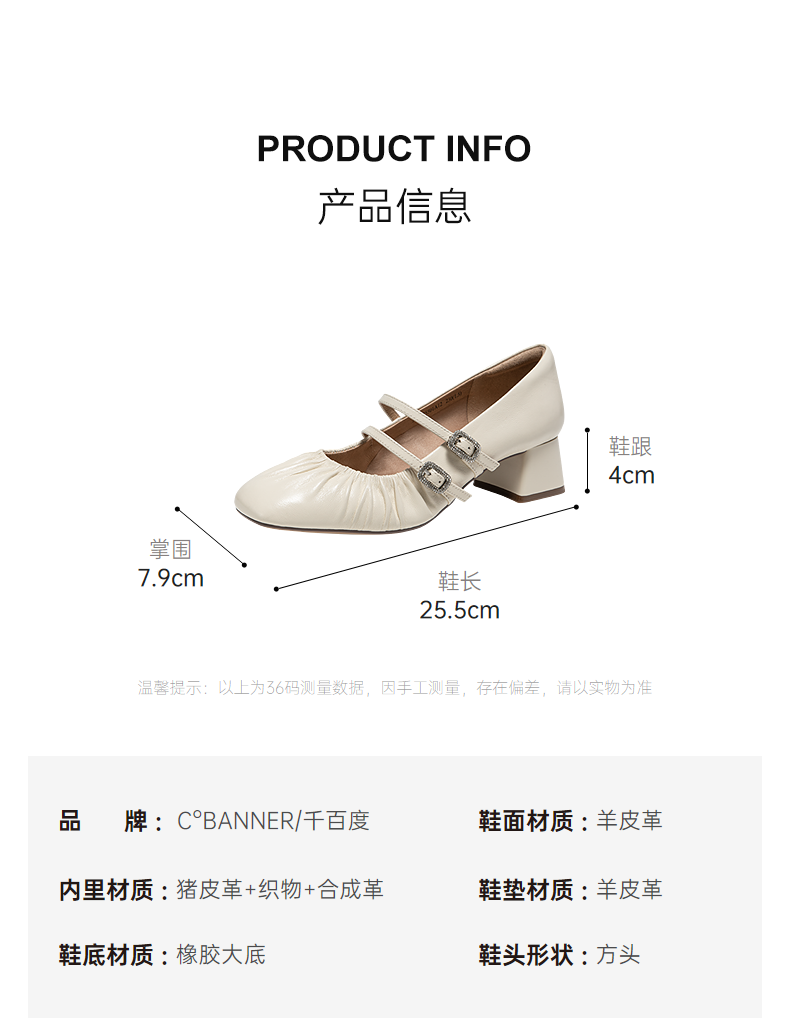 【静音系列】千百度玛丽珍女鞋粗高跟浅口法式单鞋A25185501