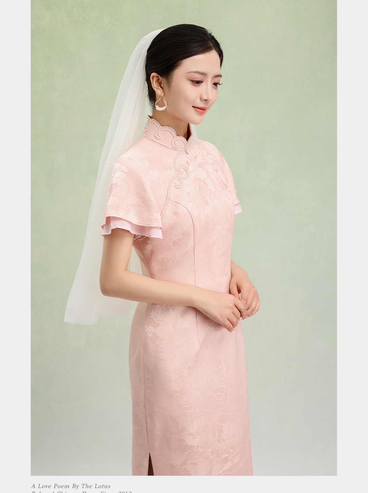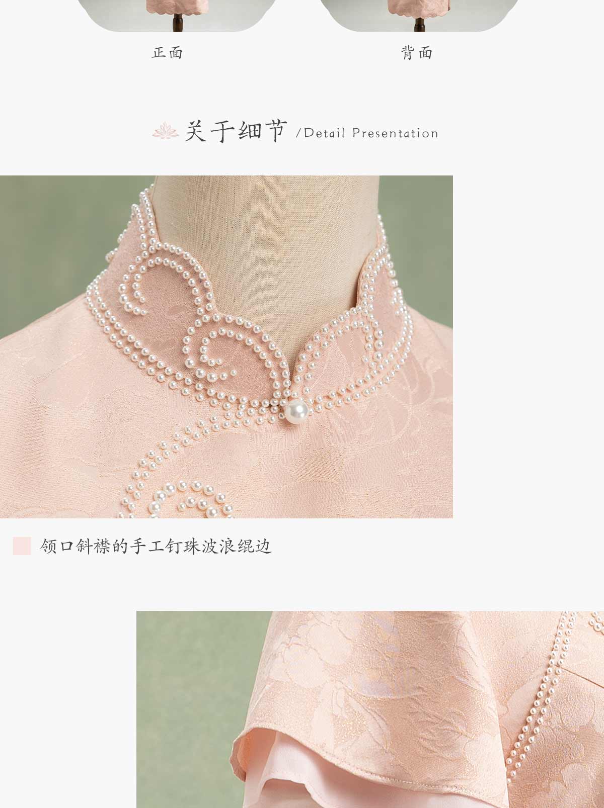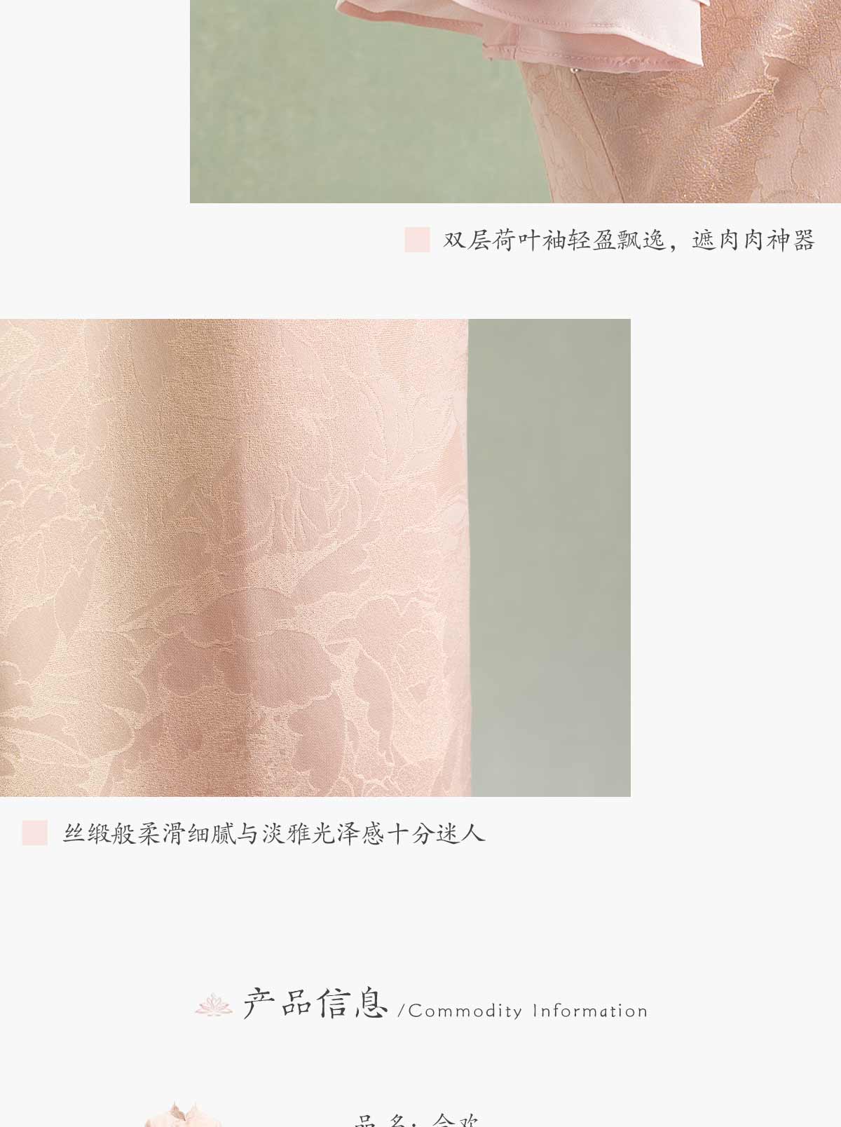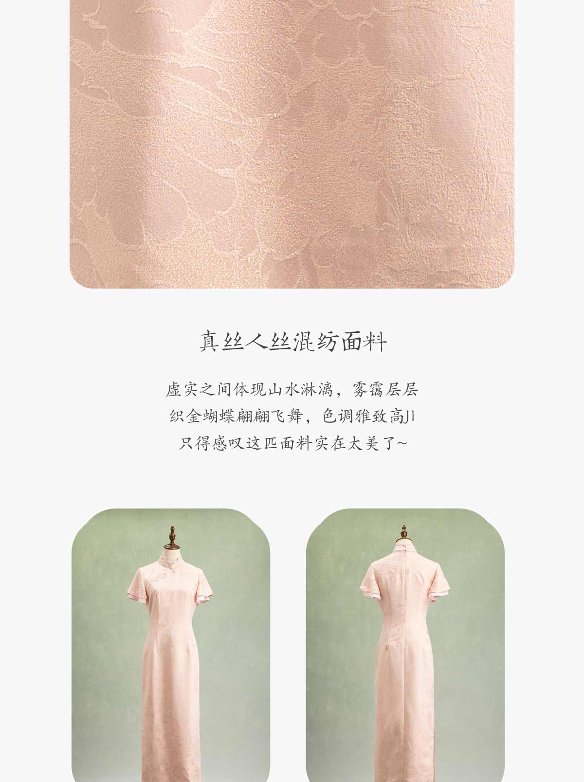 荷言HEYEN 合欢 粉色织金正绢牡丹花纹提花真丝新娘旗袍