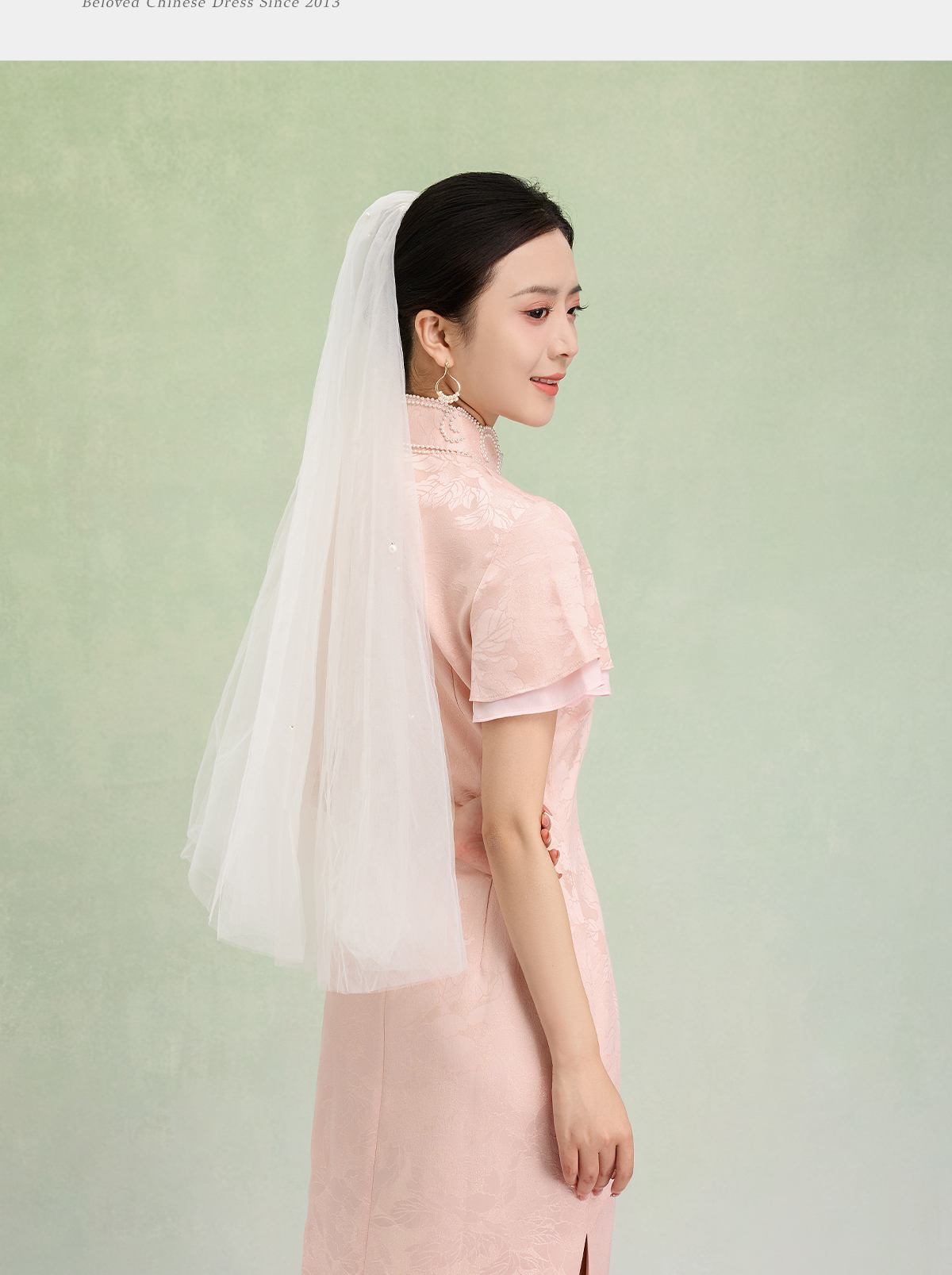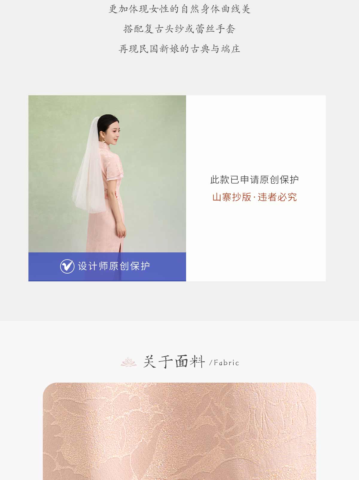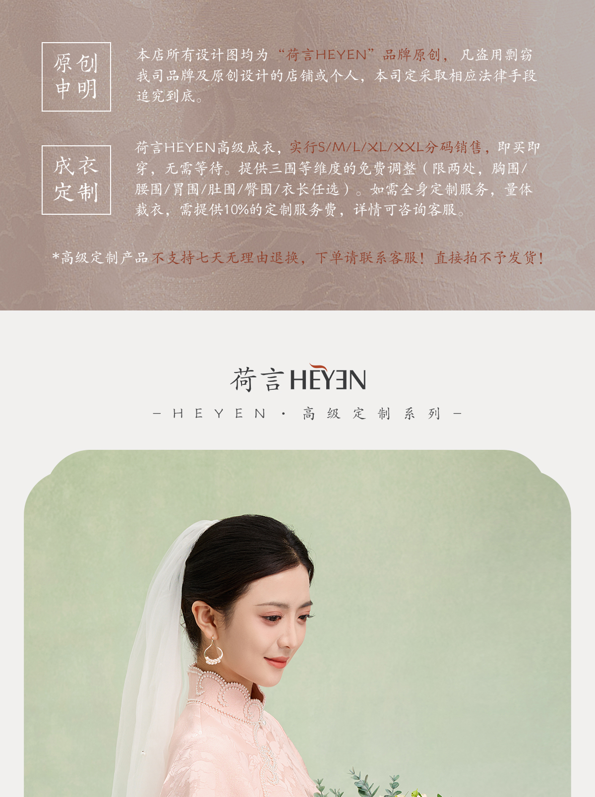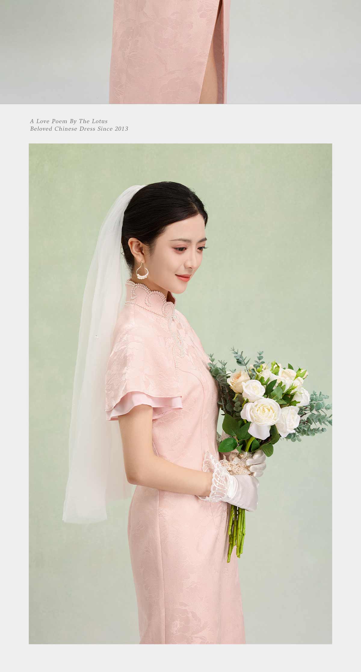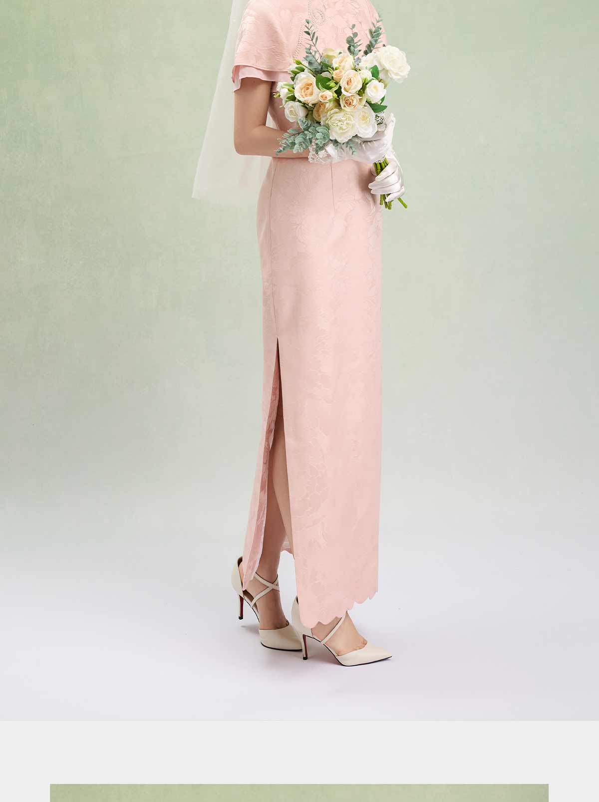 荷言HEYEN 合欢 粉色织金正绢牡丹花纹提花真丝新娘旗袍