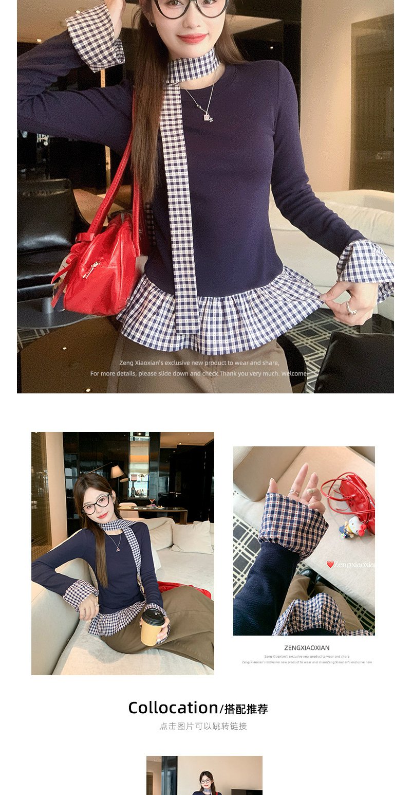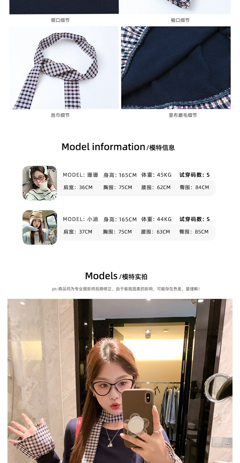 <曾小咸推荐>2.22现货秒杀 !微信超特价!韩系拼接格子长袖(含丝巾) 日常119.99 立减50 秒杀69.99!!