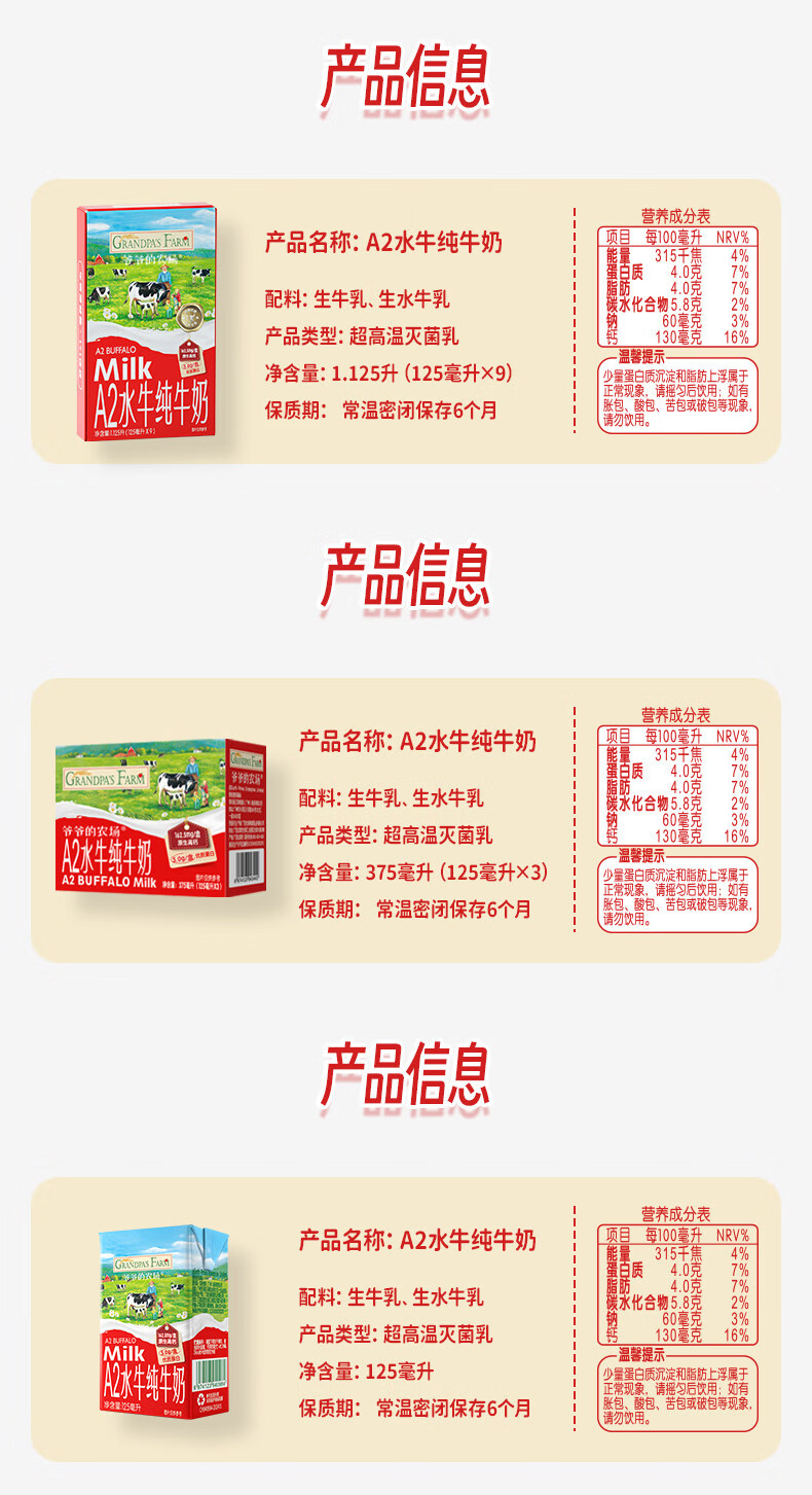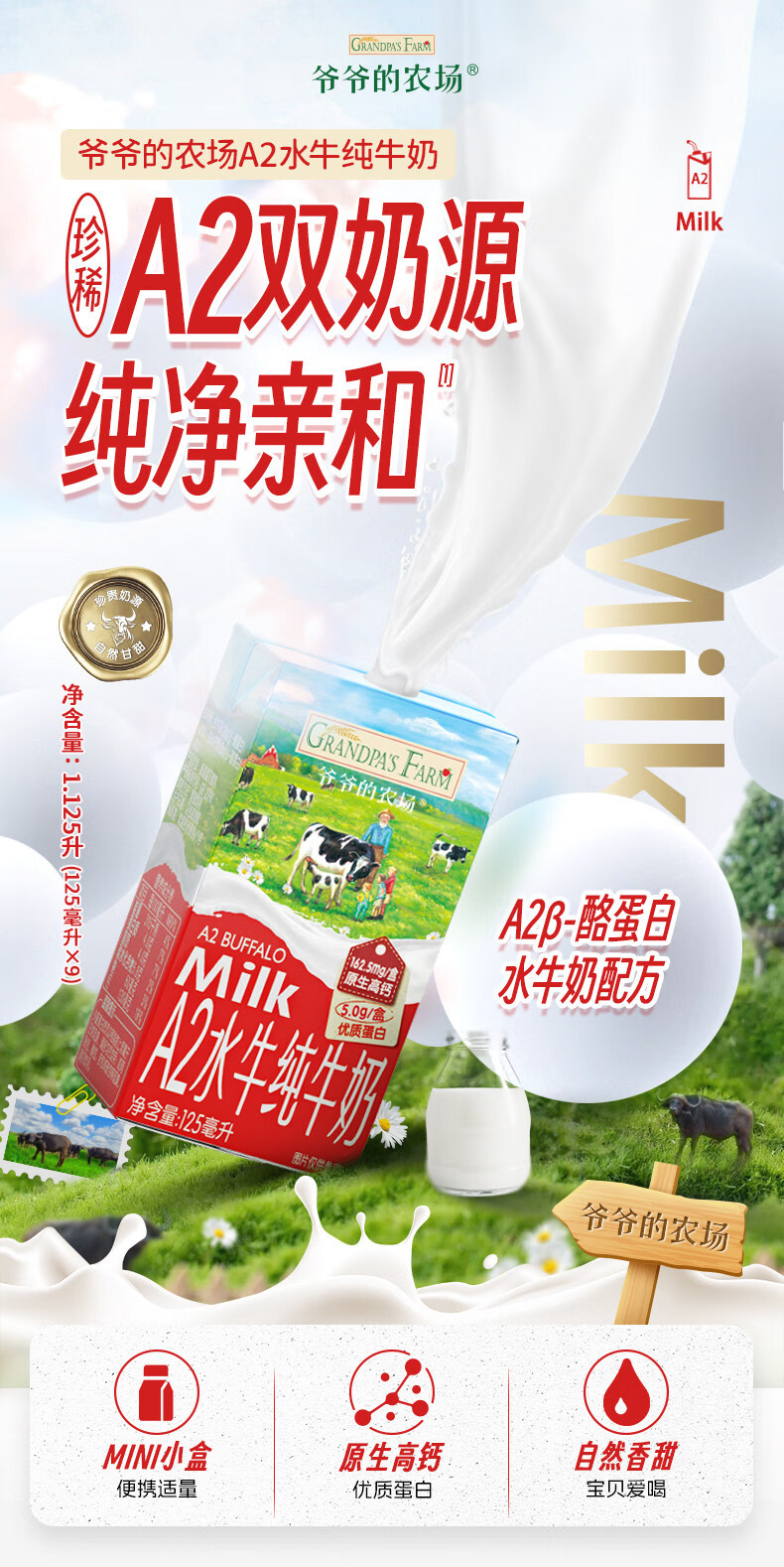 爷爷农场A2水牛纯牛奶1125ml