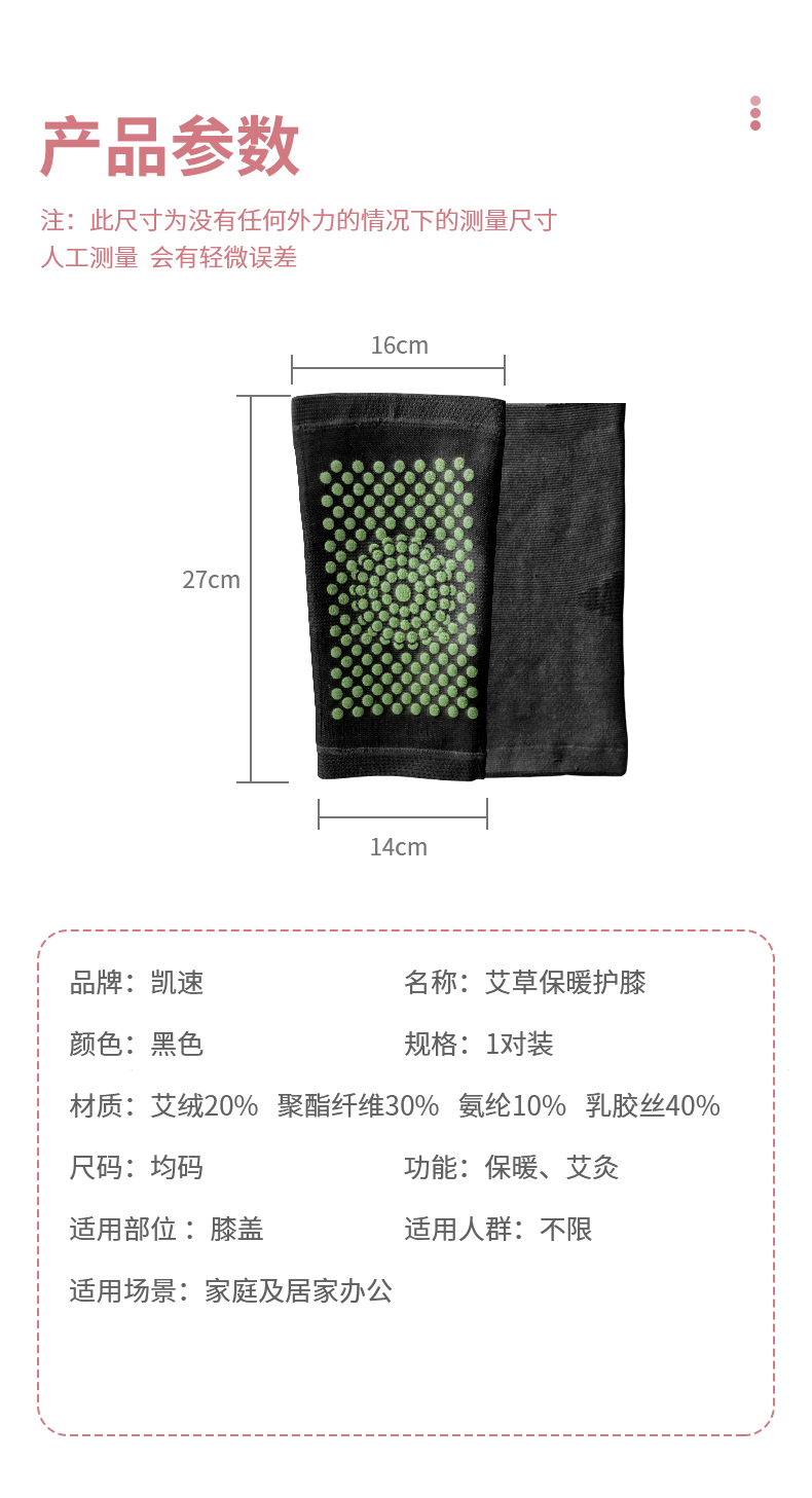 【自营】 凯速艾草自发热点阵护膝黑色-两双装(4只)KP15