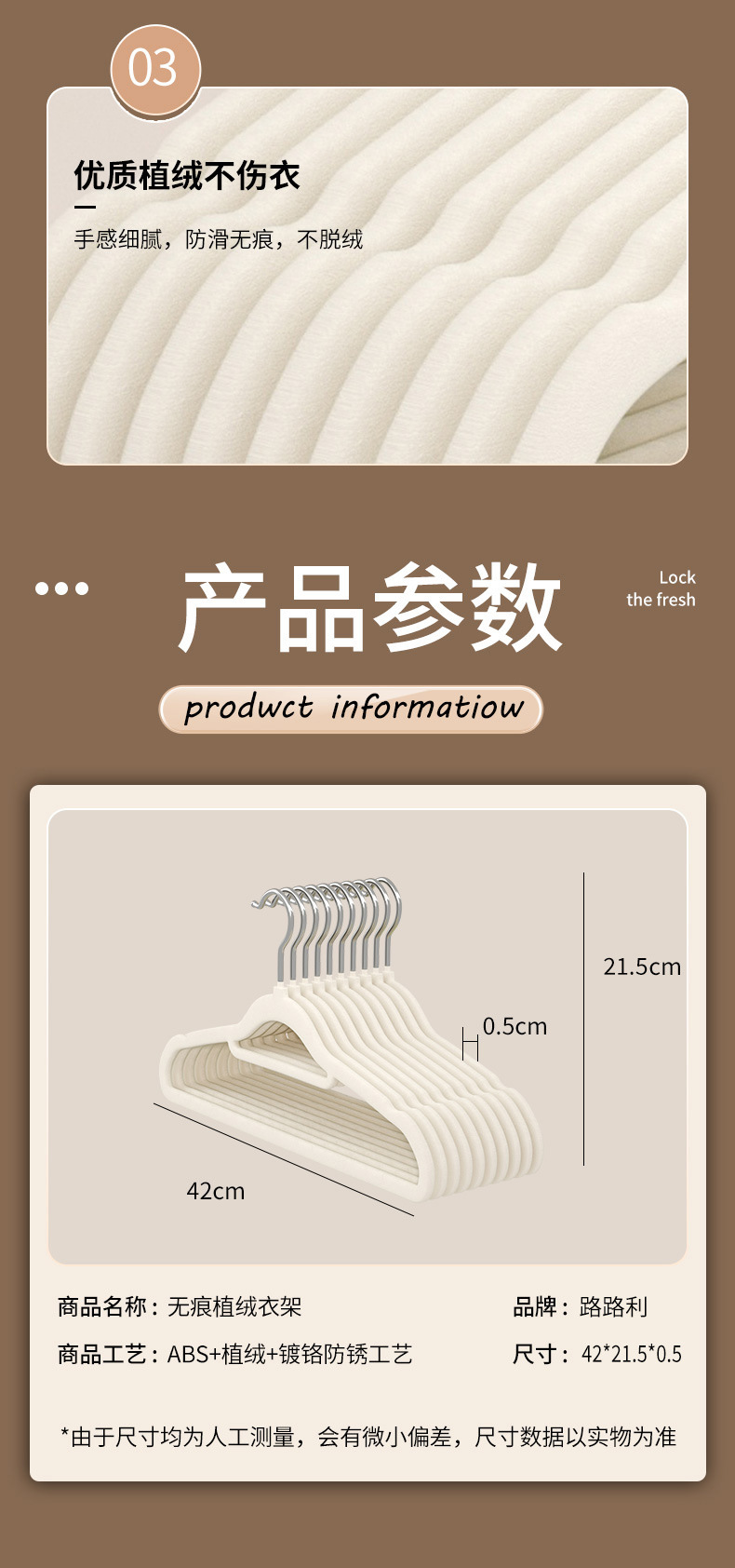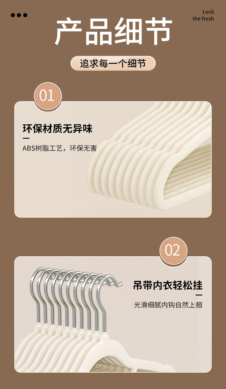 【29.9元20个植绒衣架】ZJ家用挂衣栏 植绒材质 防滑无痕 不鼓包 防肩角晾衣架干湿两用衣挂