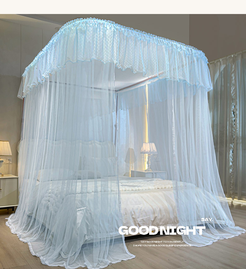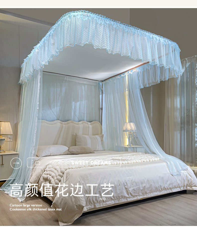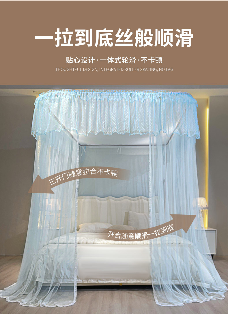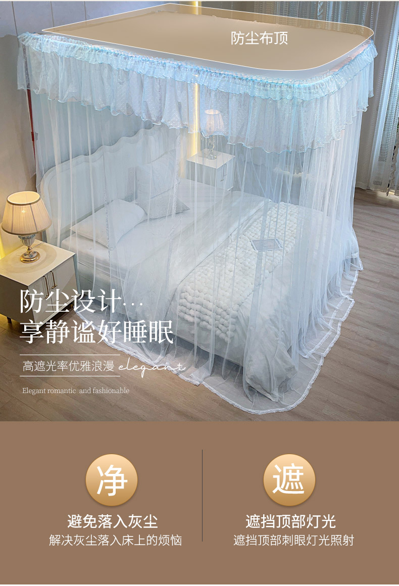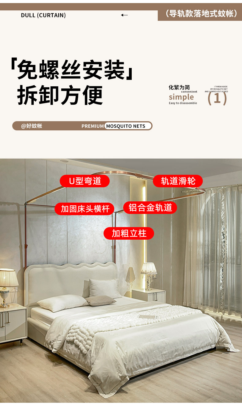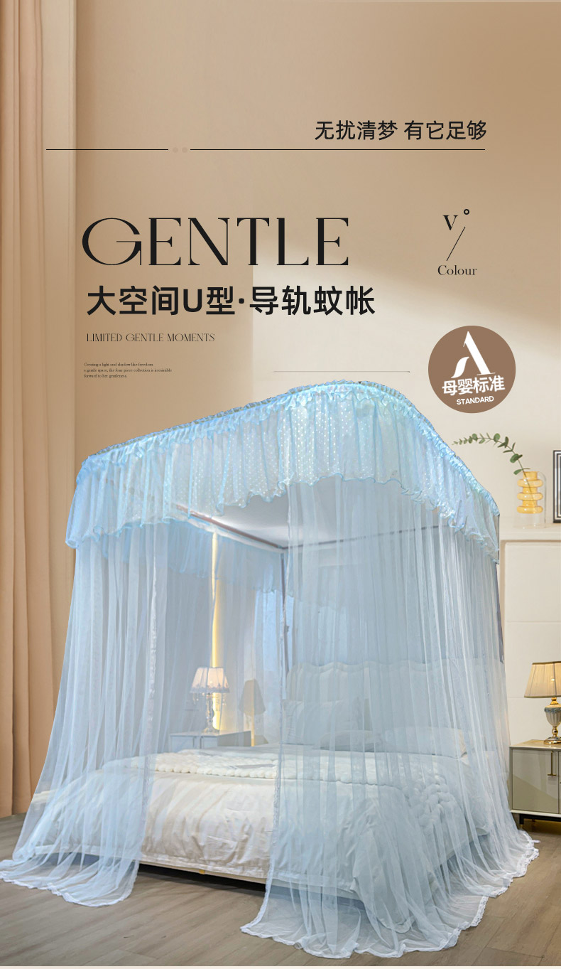 自然醒A类U型导轨蚊帐加密加厚滑轮轨道落地家用卧室防尘顶白色2406HH