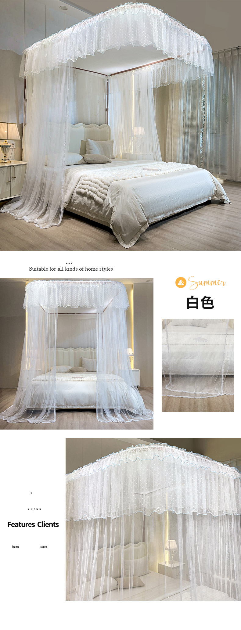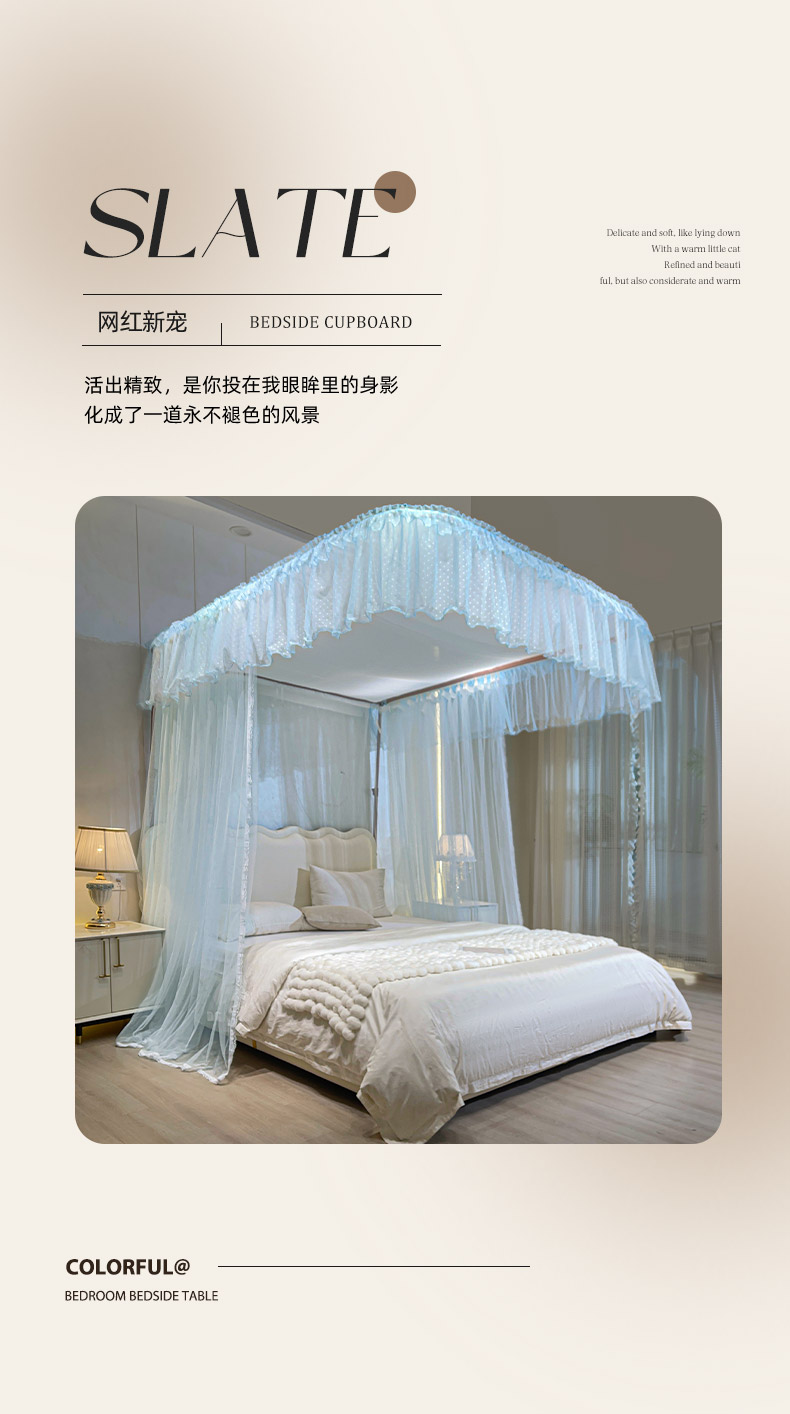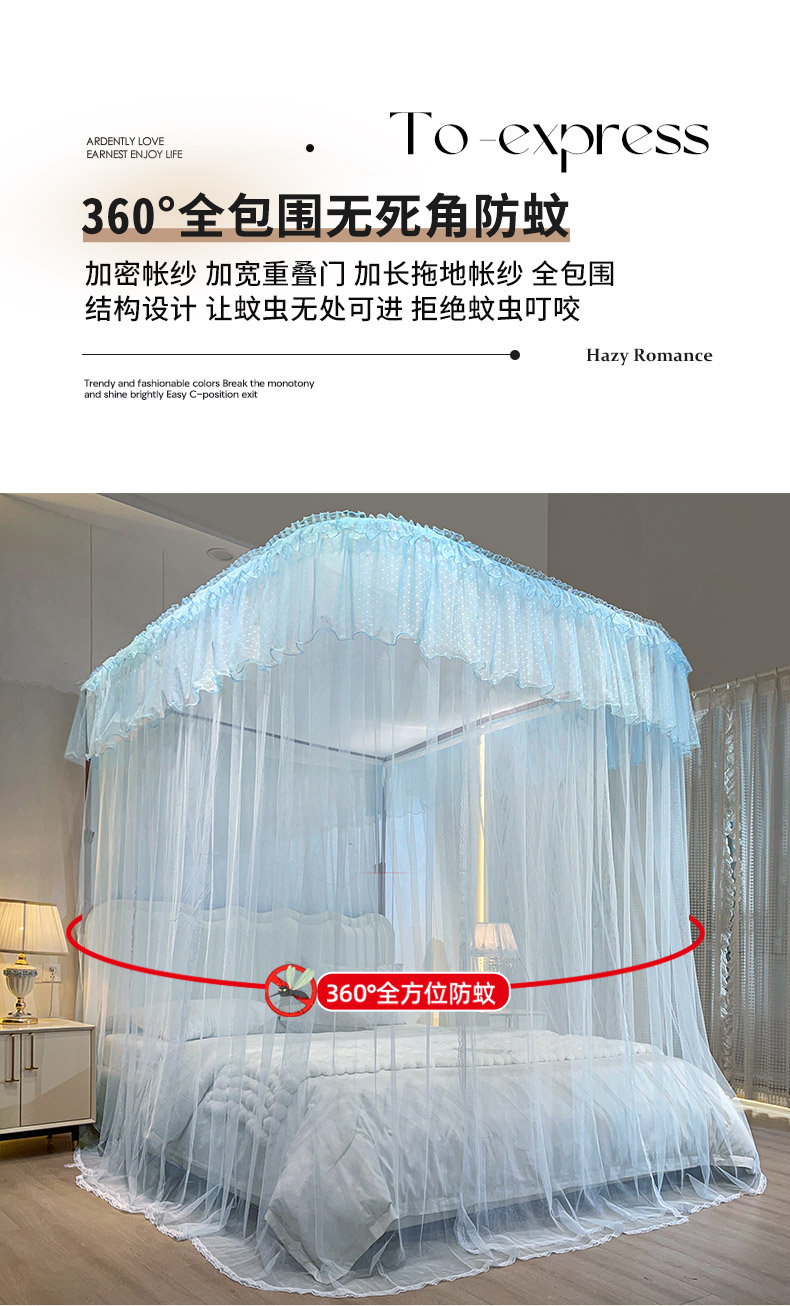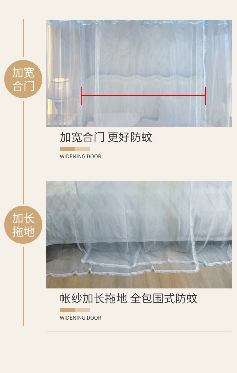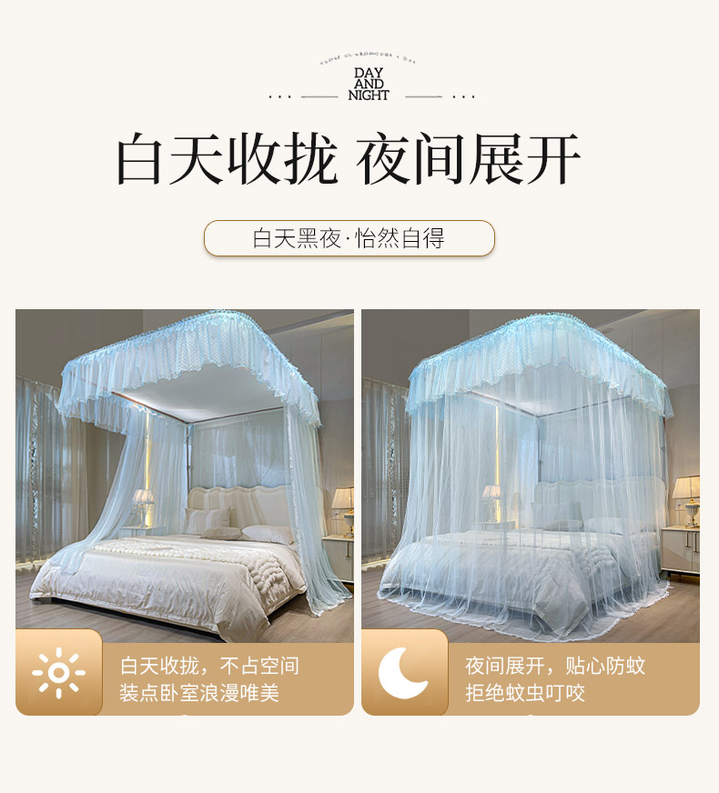自然醒A类U型导轨蚊帐加密加厚滑轮轨道落地家用卧室防尘顶白色2406HH