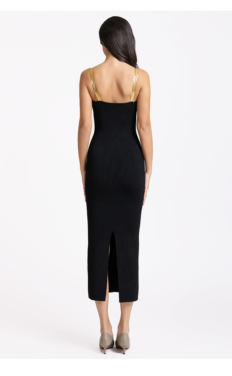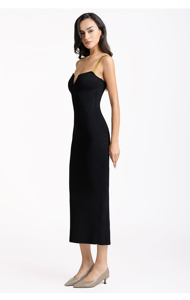 LIZZY 早秋性感吊带针织连衣裙露背无袖宴会礼服连衣裙中长款女7926