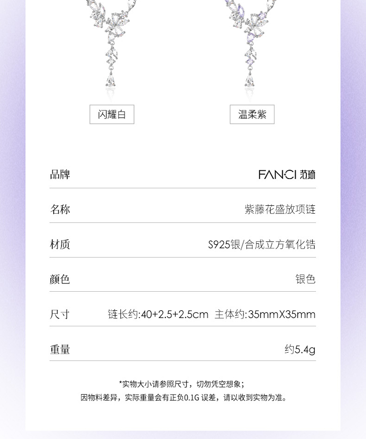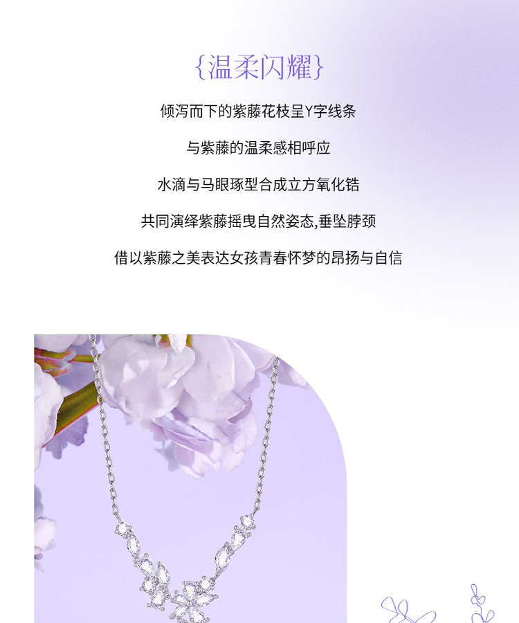 【明星同款】【紫藤花盛放项链】Fanci范琦s925银镶嵌锆石锁骨链