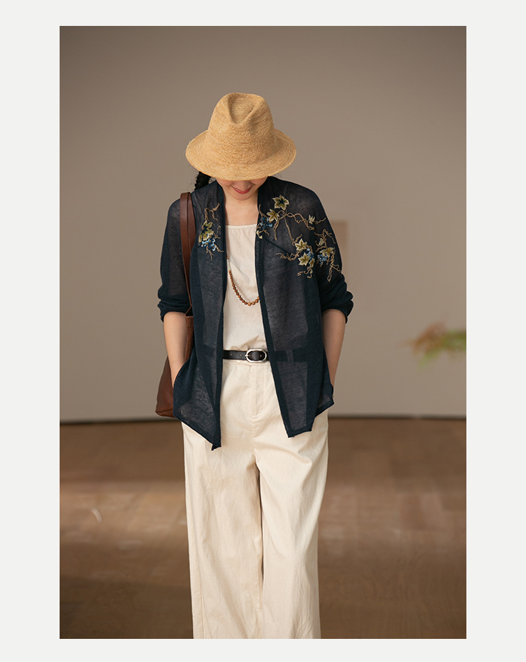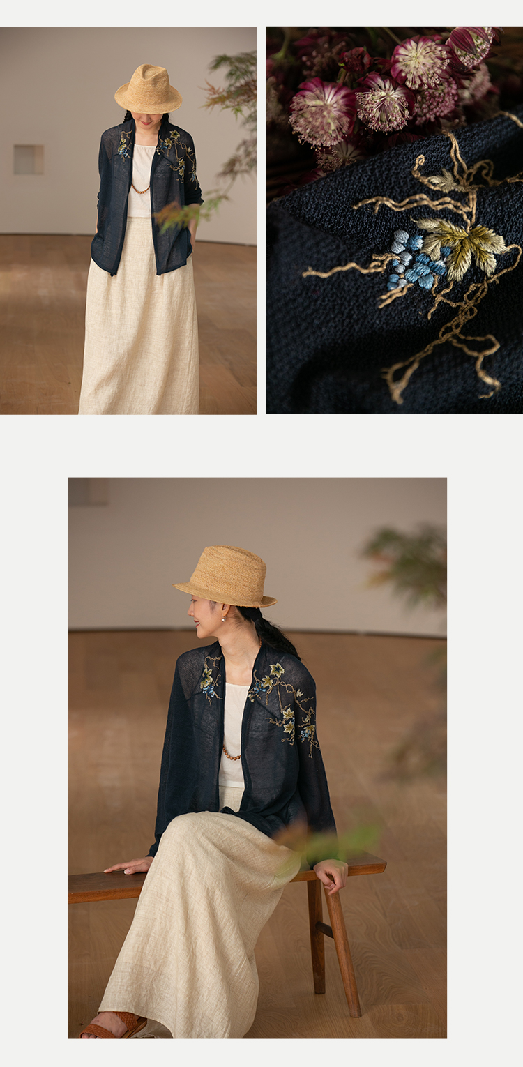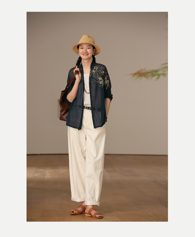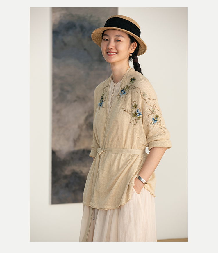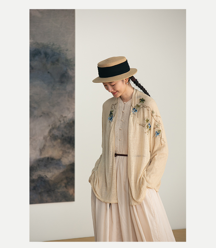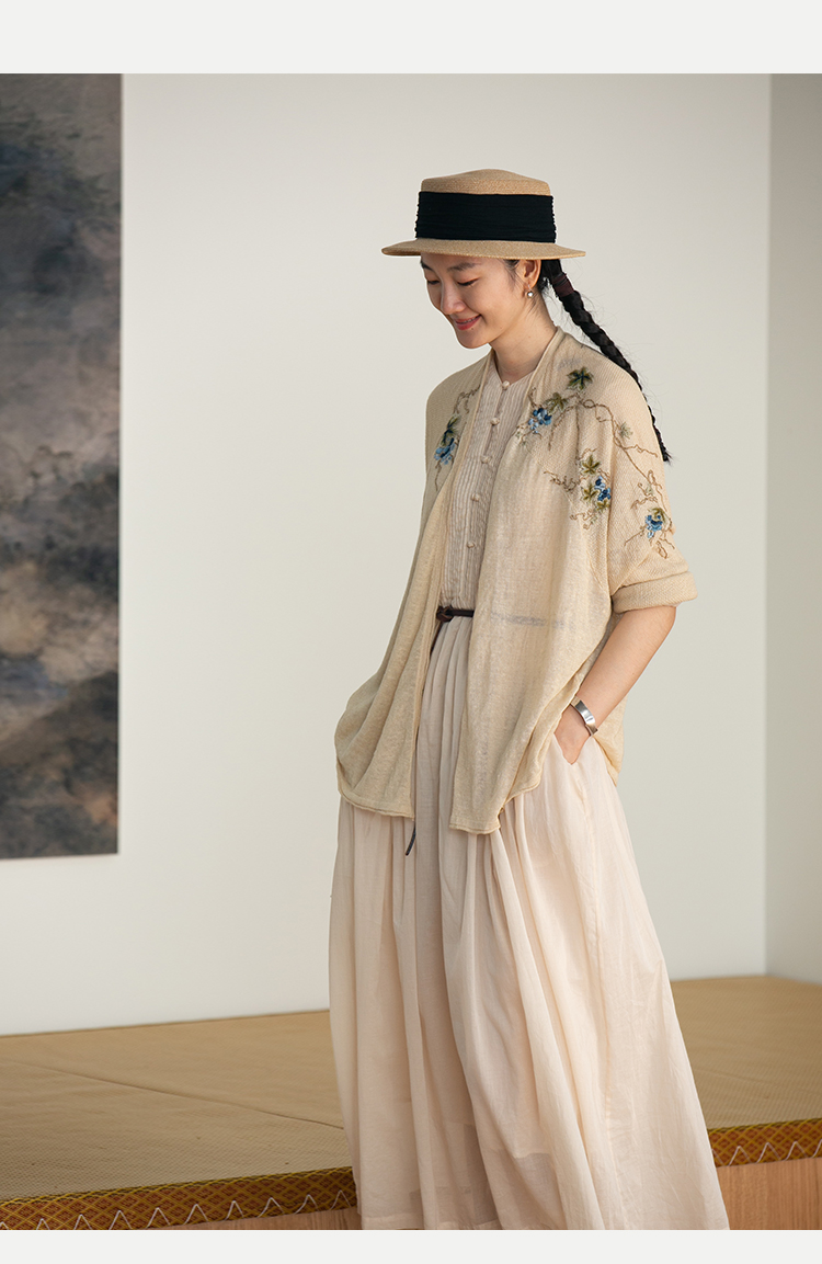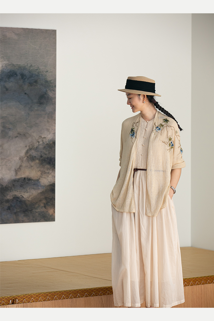 牧衣游原创 手工刺绣100支全棉衬衫女新品轻薄百搭文艺衬衣 麦禾