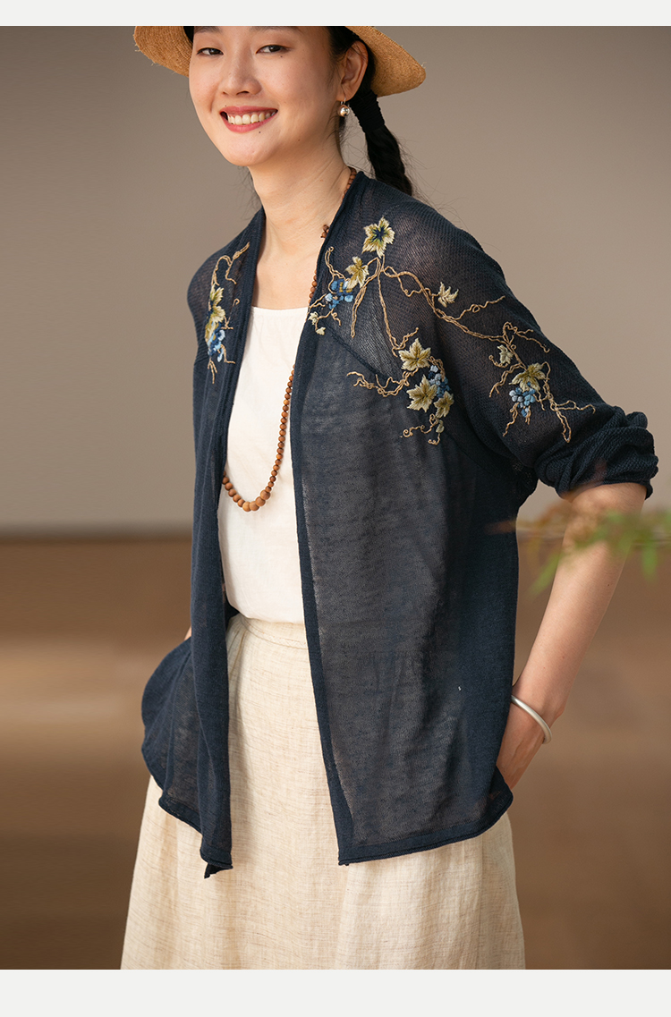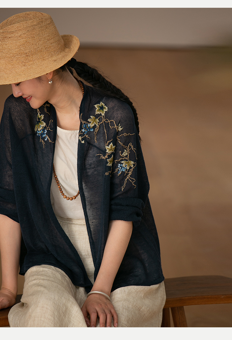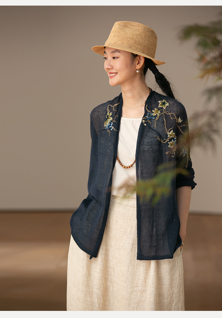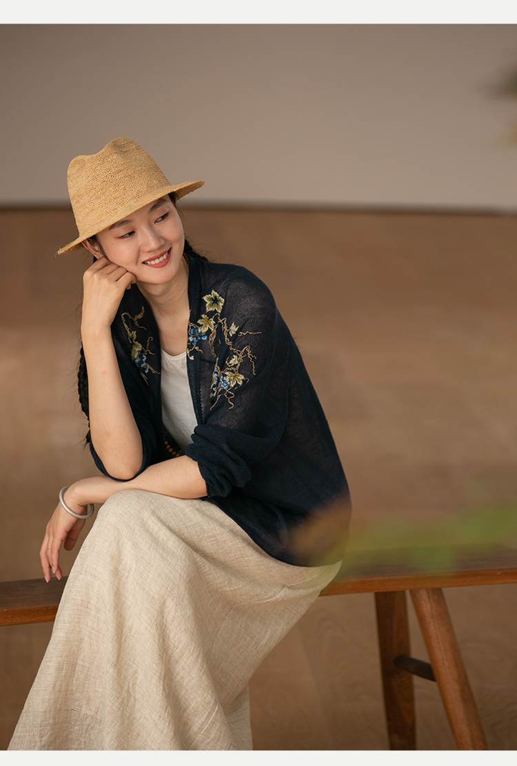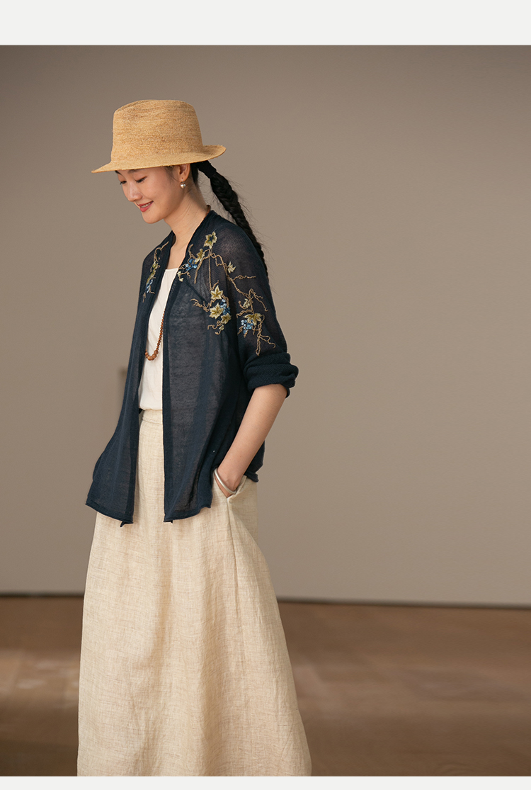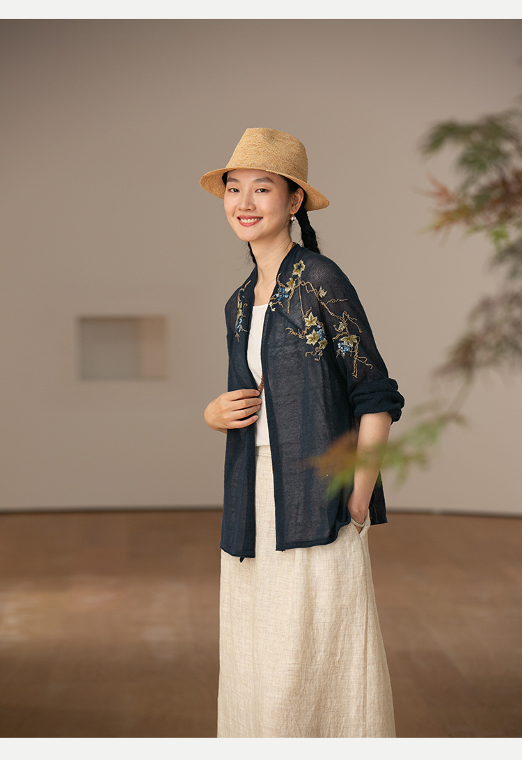 牧衣游原创 手工刺绣100支全棉衬衫女新品轻薄百搭文艺衬衣 麦禾