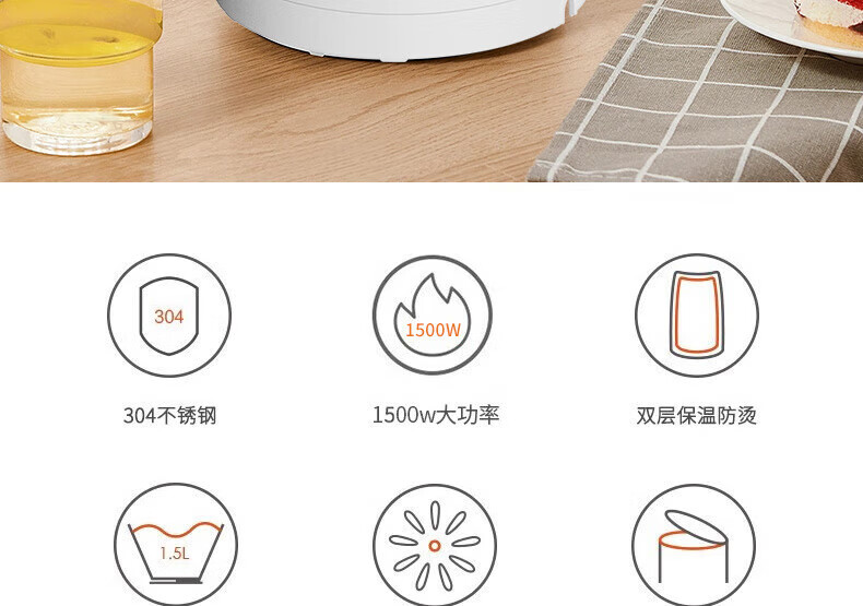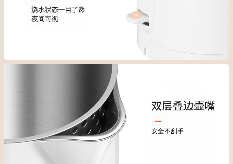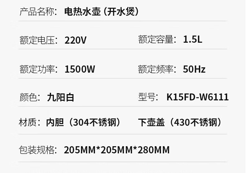 九阳 双层保温防烫大容量电水壶K15FD-W6111 优质温控 精准耐用