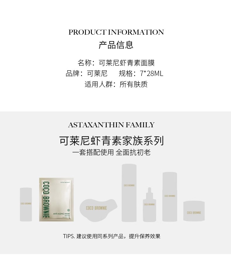 【中欧班列】新西兰品牌可莱尼面膜 Coco Brownie虾青素补水保湿滋润贴片式面膜7片/盒 SZQR