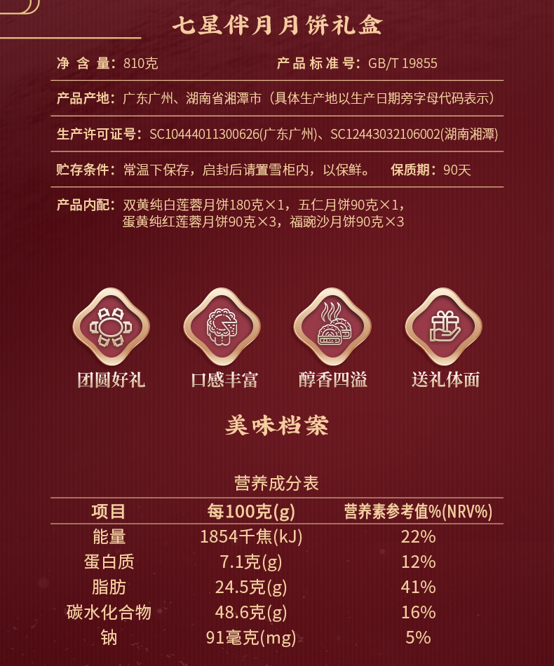 【票卷同售】广州酒家经典款 | 七星伴月月饼810g8粒装