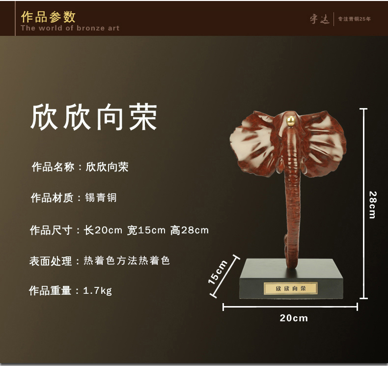 宇达青铜全铜象摆件《欣欣向荣》家居礼品 装饰 工艺摆件 高28cm