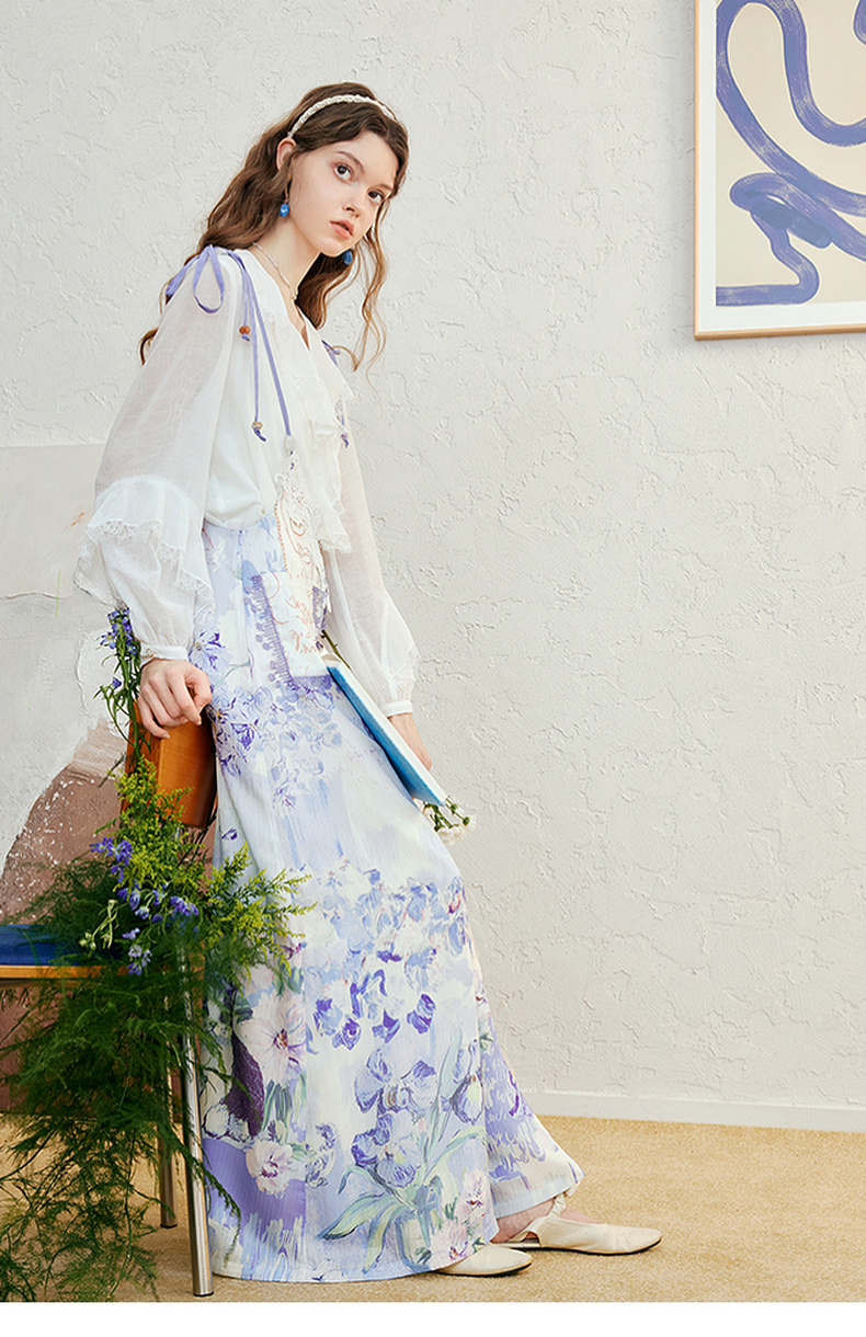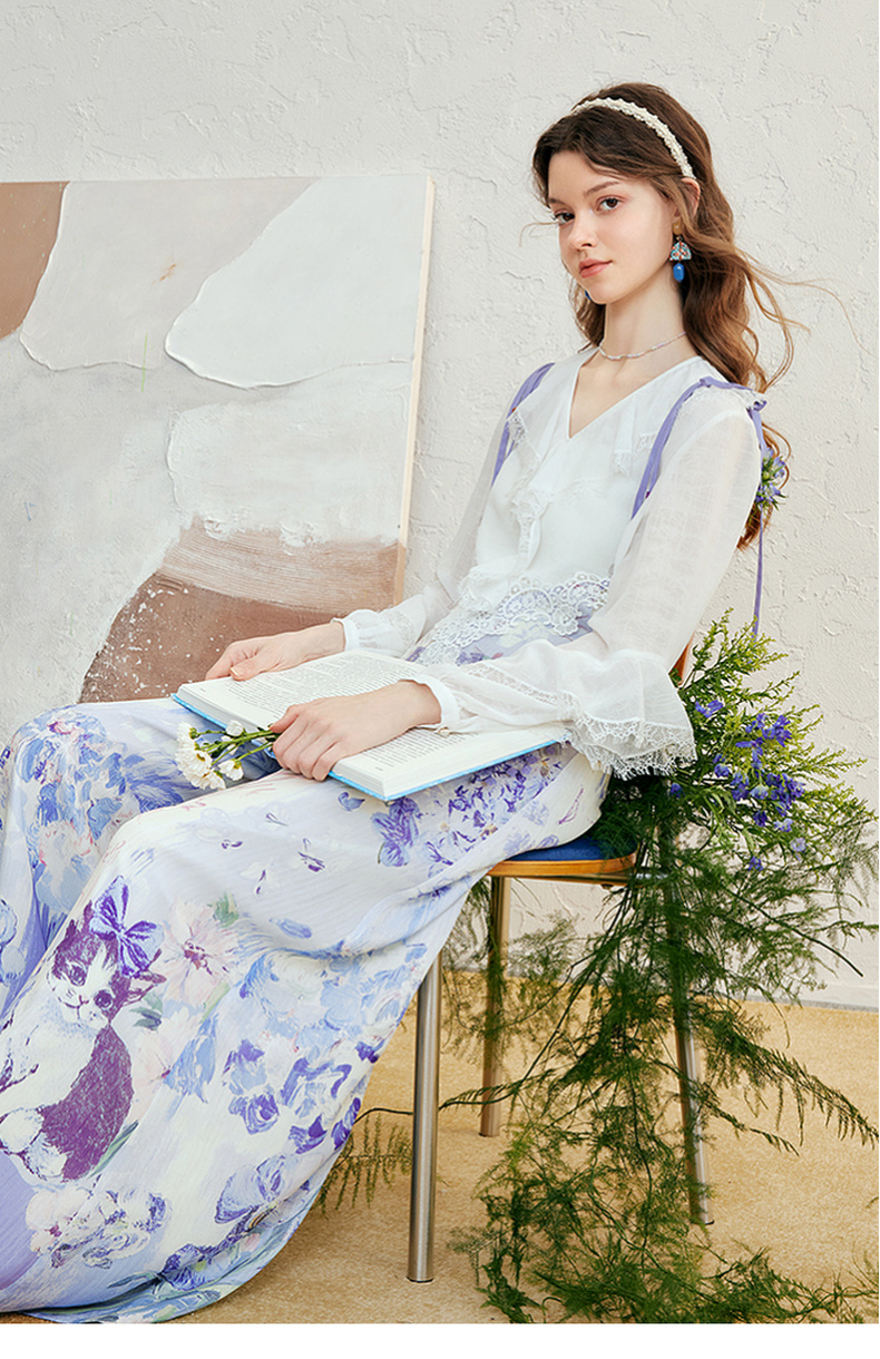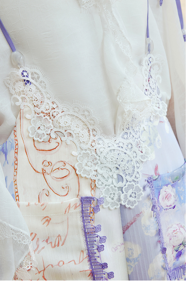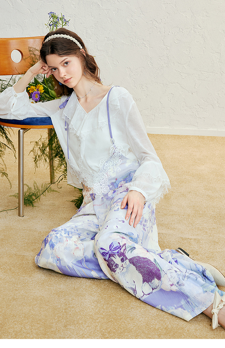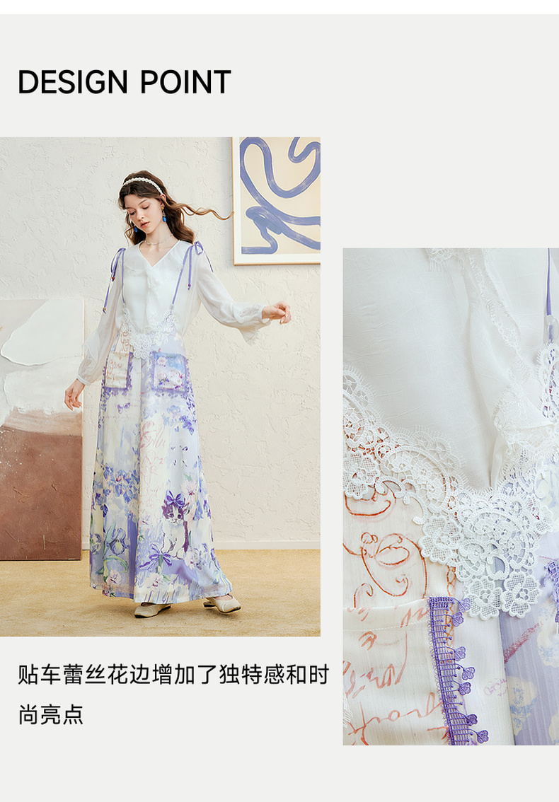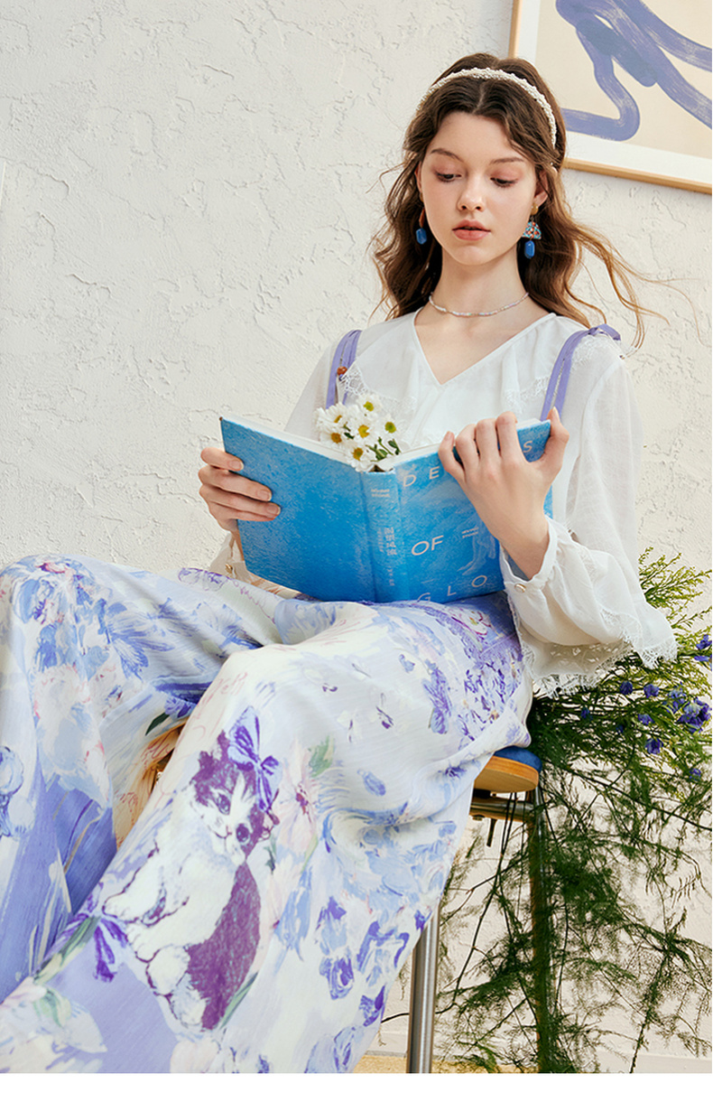 两三事 花路之途 2025春季新款甜美印花绑带背带裤女宽松休闲裤