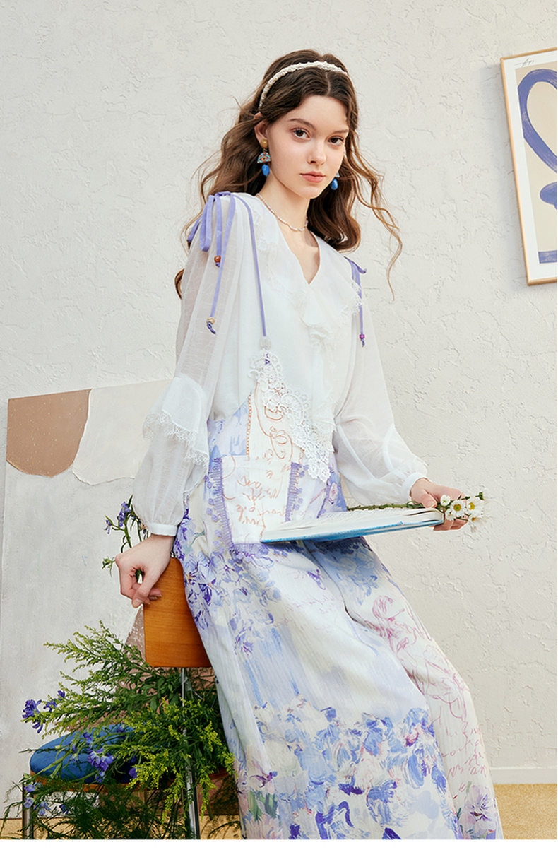 连衣裙 两三事梵高艺术衣铃悬花秋季新款复古连衣裙女气质设计感长款