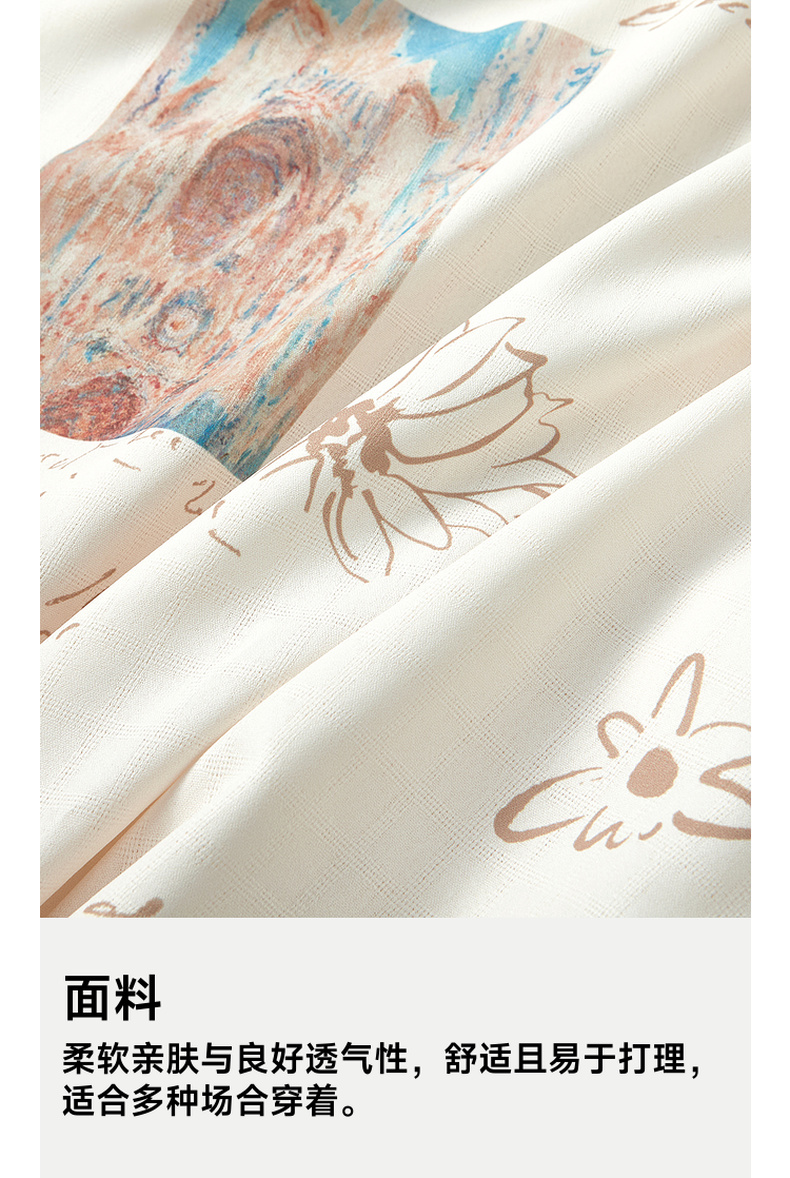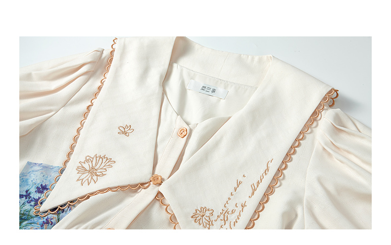 两三事梵高文艺 风过书页 2025冬季新款印花披肩拼接假两件衬衫女