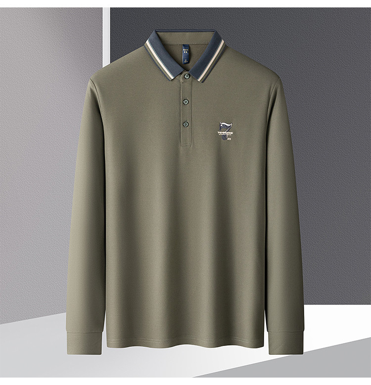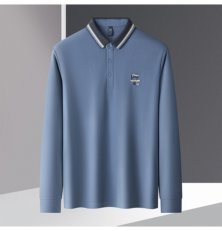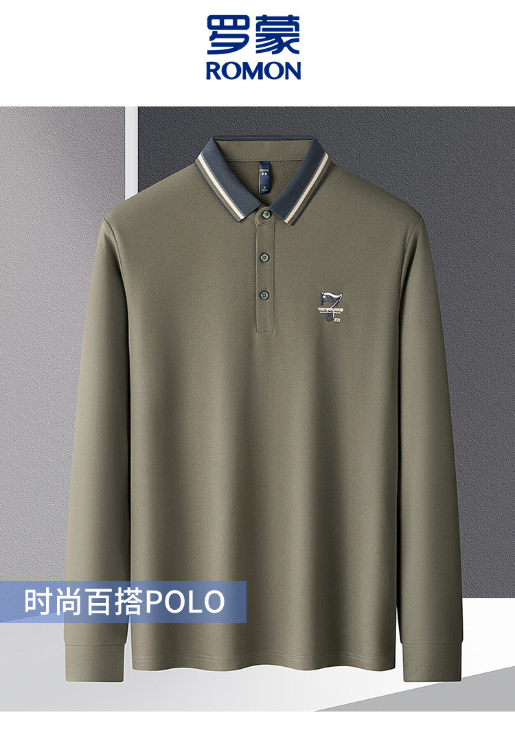 【绣花胸标】罗蒙春秋男士仿丝光polo衫男长袖t恤男商务男士polo衫