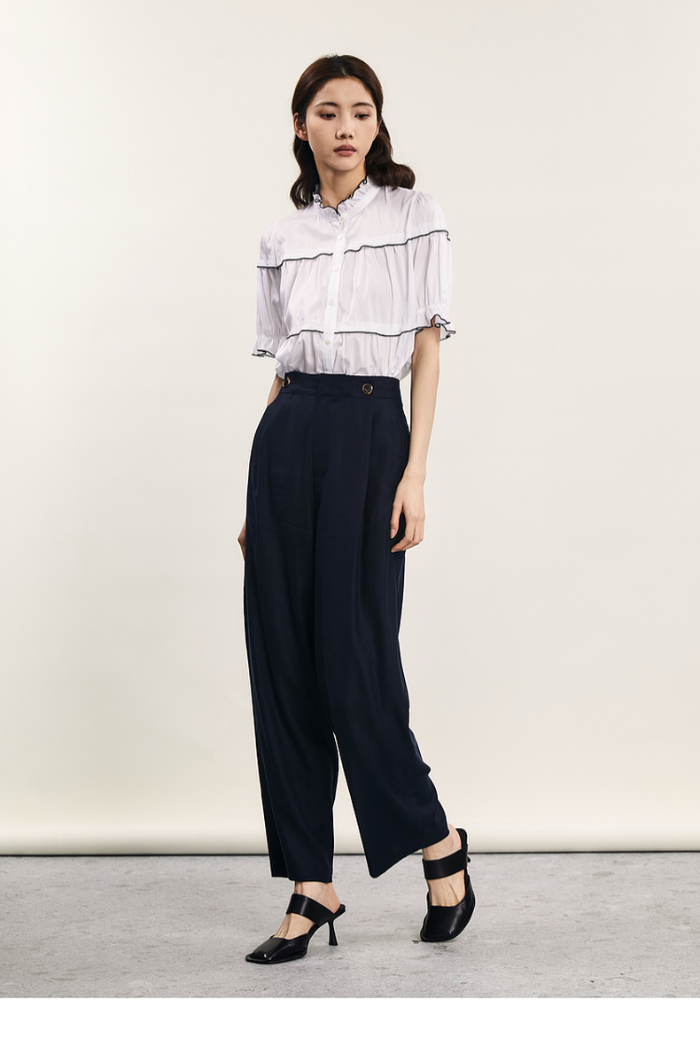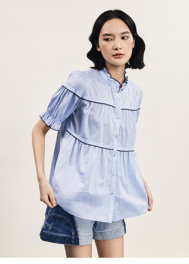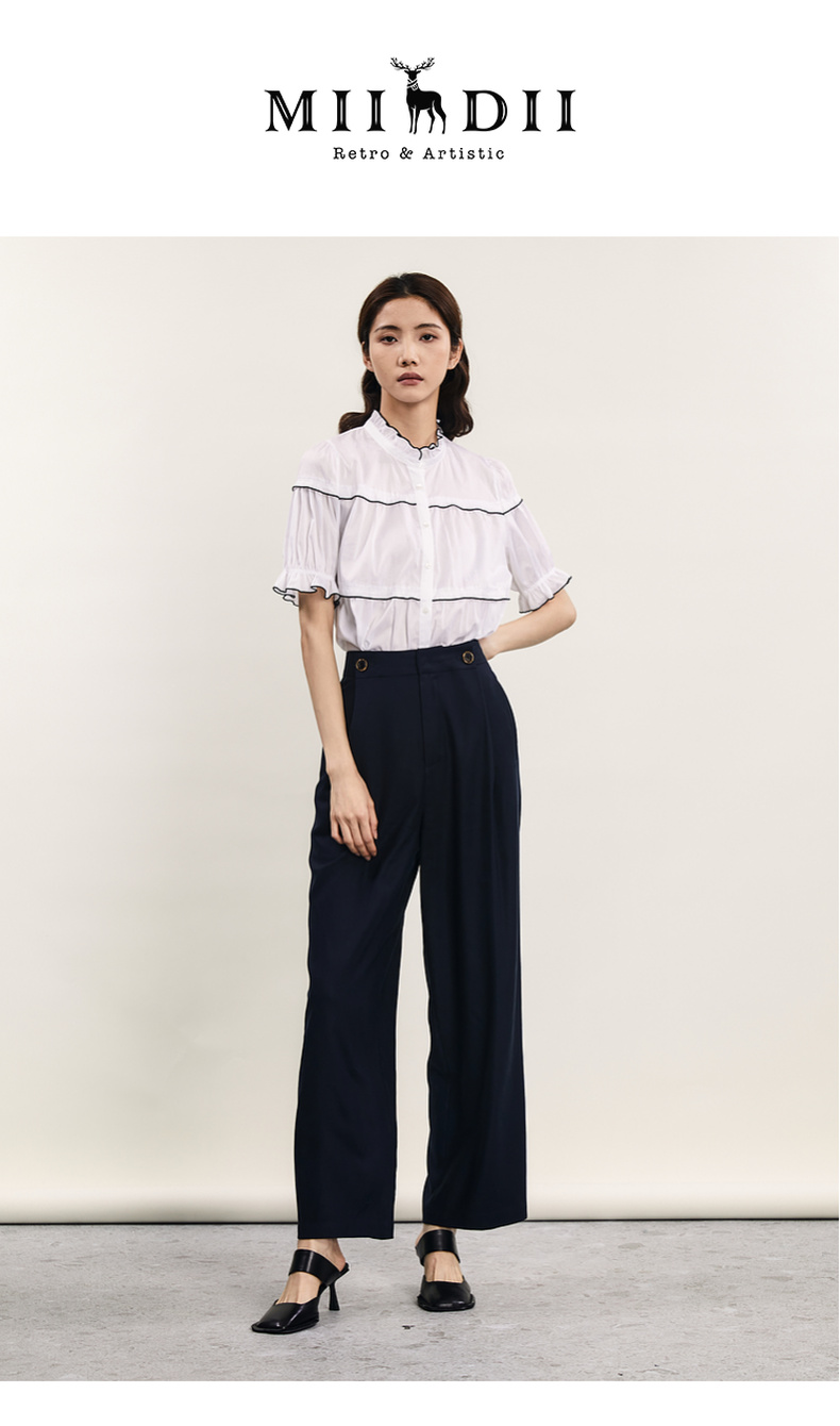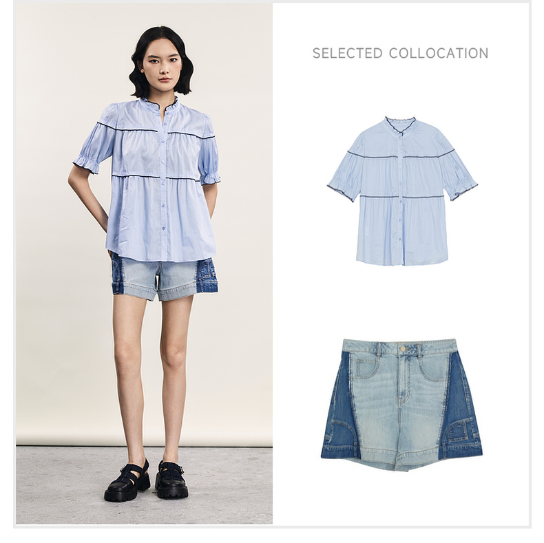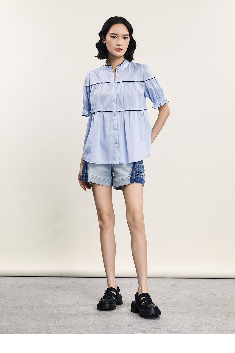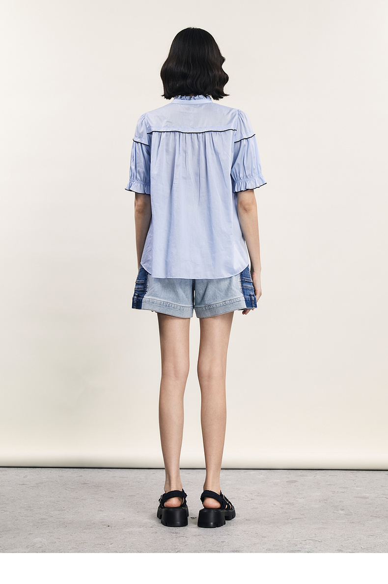 谜底纯棉衬衫短袖女2024夏季新品通勤风少女感宽松衬衣242MC0634
