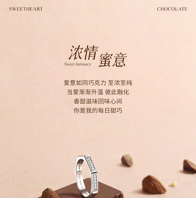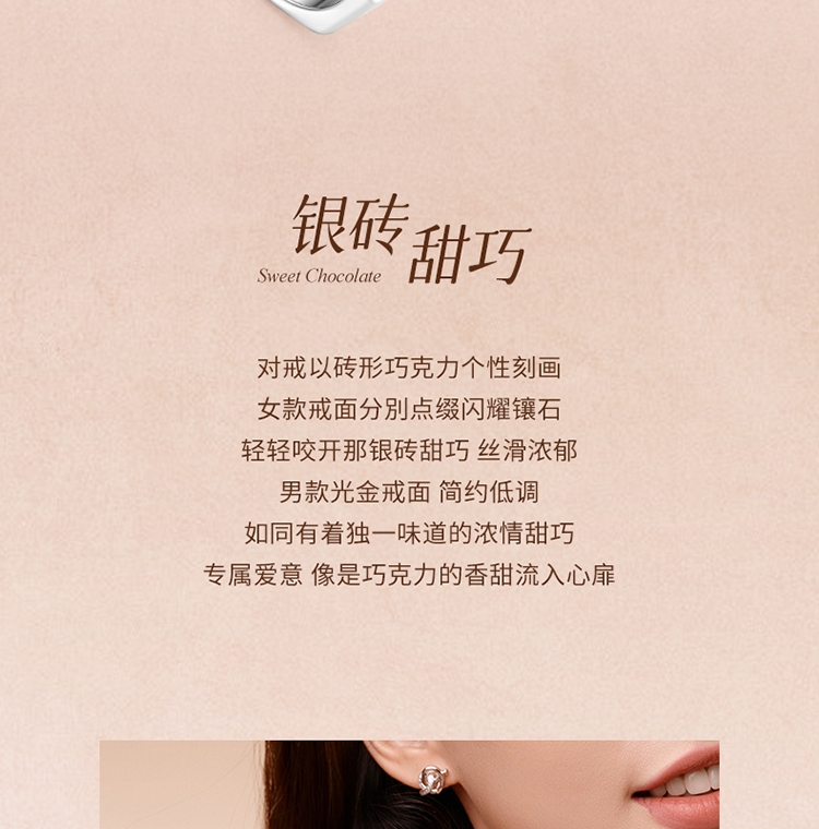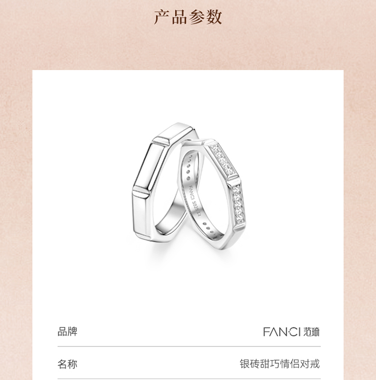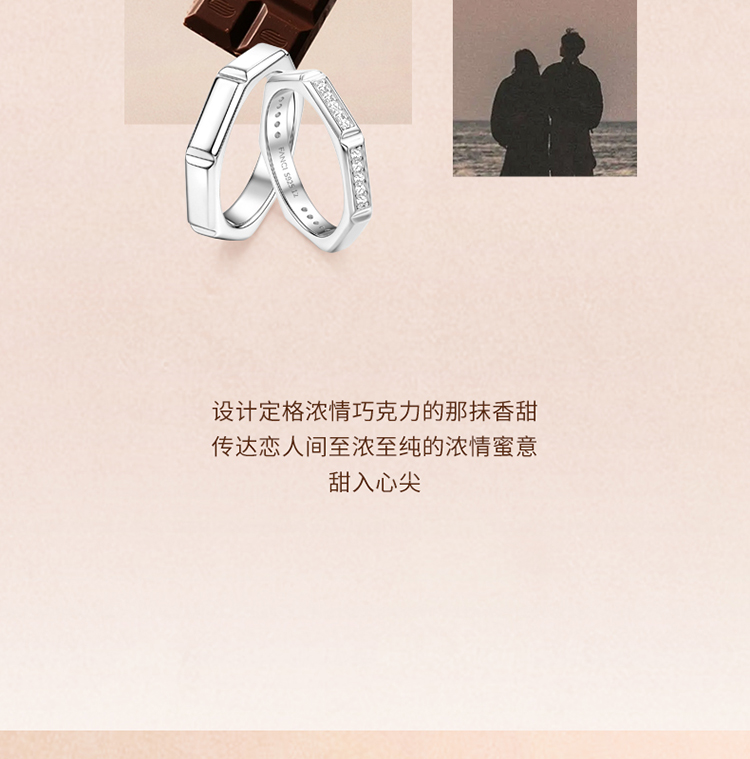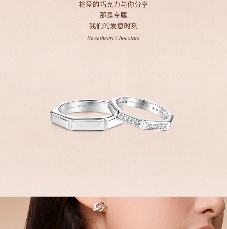 Fanci范琦【甜心巧克力系列】银砖甜巧情侣对戒指 送女友生日礼物送男友