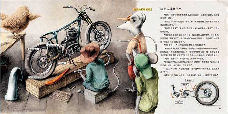 虽然现代摩托车的技术在不断发展,但其基本结构并未发生太大的变化。《小小工程师》系列之《勇敢应战摩托赛》,讲述的是一个与摩托车有关的成长故事。随着故事情节的发展,一幅幅工程级的绘图呈现在我们的面前,将摩托车的零件、内部构造,以及工作原理等深深印在我们的脑海,使读者不得不佩服其专业性。本书同样适合亲子共读,一边收获知识,一边品味成长。