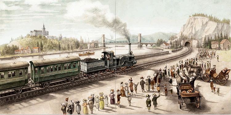 ⑤《曾曾祖父的火车奇缘》 对铁路知识进行系统、专业的讲解,将铁路的起源和发展巧妙地融入其中。