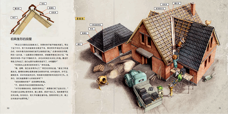 这是一本有趣的童书,字里行间充满幽默感。本书对于建筑专业的细节也交待得相当精准,主要的构件都在图上逐一标注,一目了然。小读者们一定可以从中获得很多有益的建筑知识,甚至就此受到启蒙,长大后真的成为一名伟大的建筑师也说不准呢!
