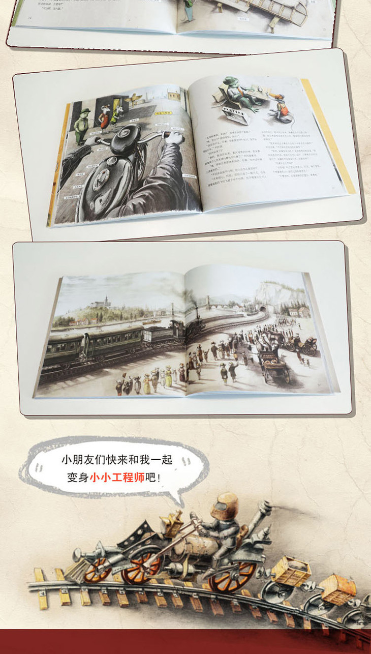 《小小工程师》系列作品的另一个亮点,无疑是书中对机械构造、工程设计等知识的介绍。作者通过浅显易懂的文字和精确细致的工程级图解,将汽车、飞机、摩托、铁路等机械制造和房屋建筑工程的基本知识十分完整地呈现出来,其中有相当一部分知识的讲解,还是在角色的对话互动中巧妙地完成的。仔细欣赏书中的每一幅图画,读者在感到赏心悦目的同时,总是能在无数的细节中发现创作者努力融合童话与科学的创意和用心。