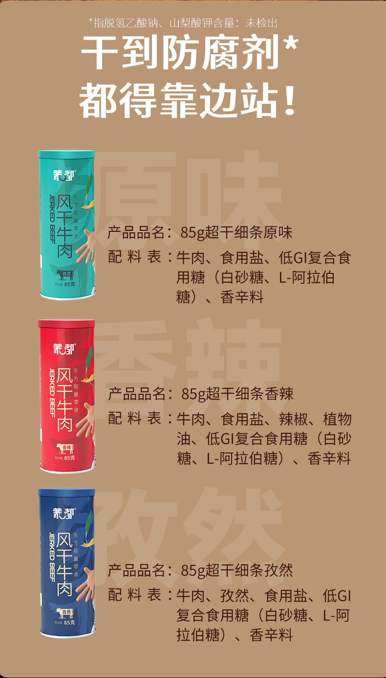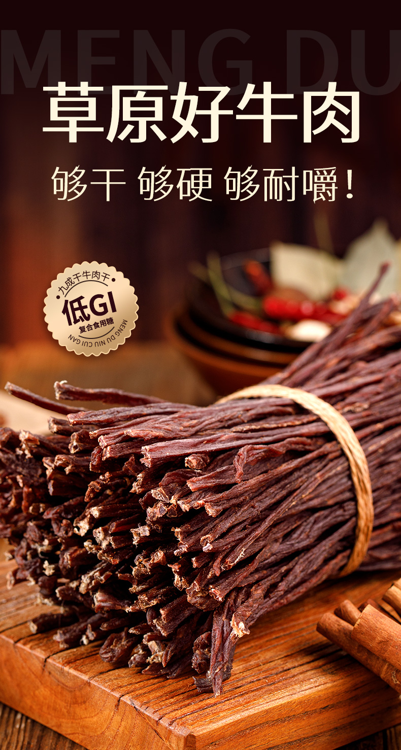 蒙都 条状超干牛肉干(原味/孜然/香辣)85g 多规格组合