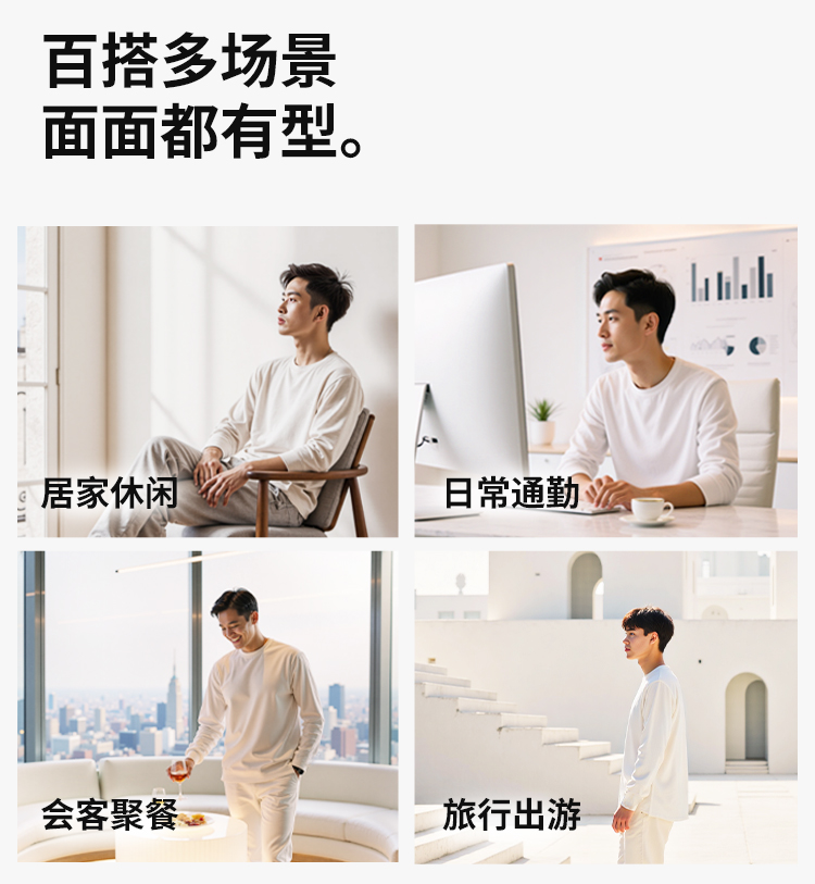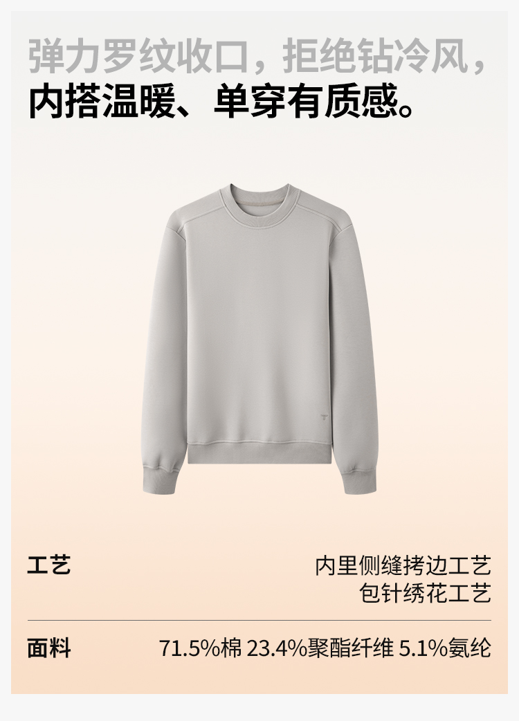 拇指白小T水云棉PLUS小高领长袖男款至简舒感系列