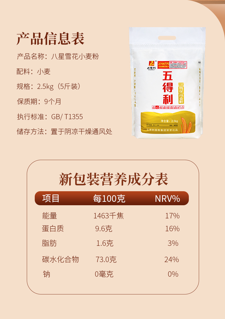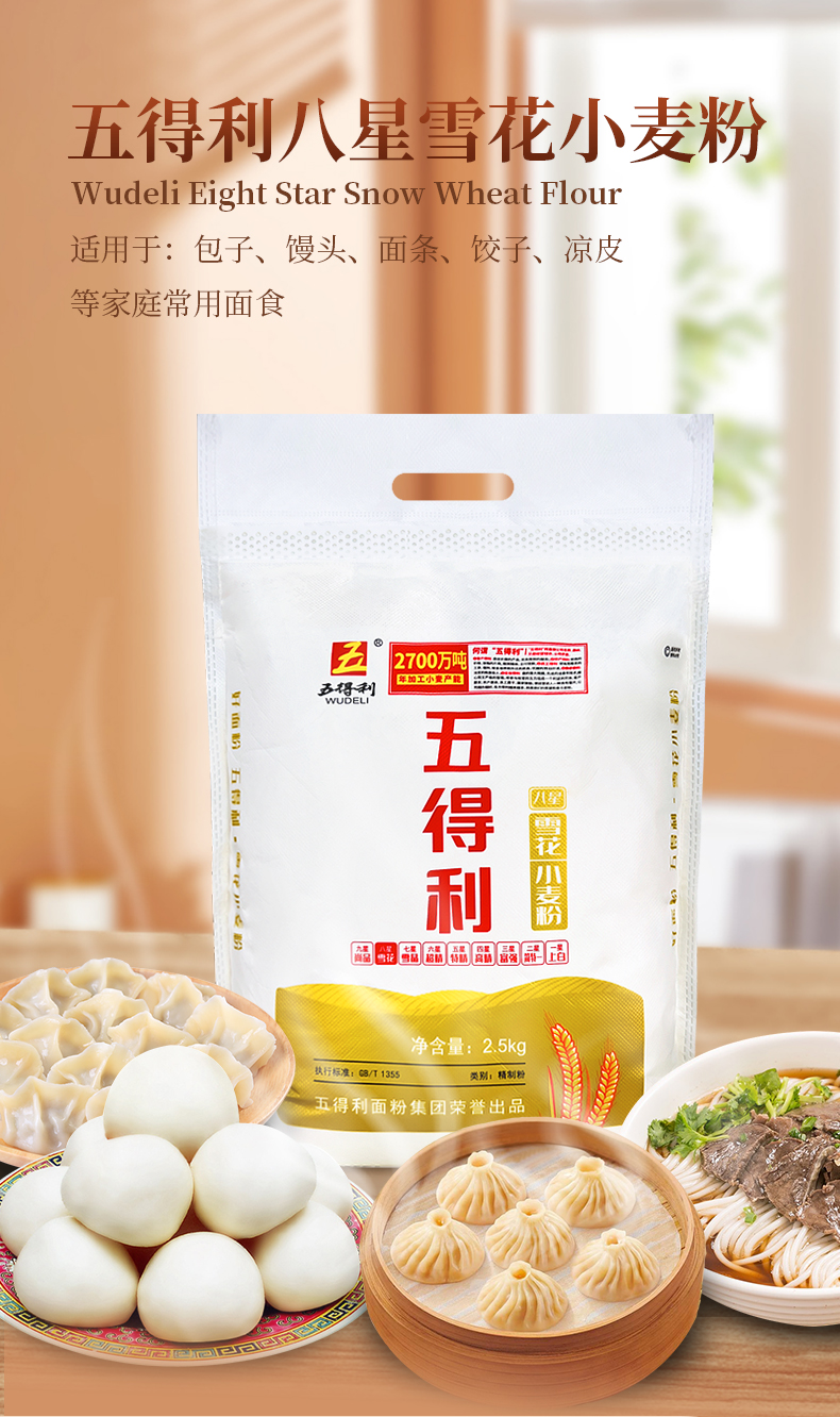 【八星雪花粉2.5kg】五得利8星雪花小麦粉2.5kg!小家庭装,品质之选,面食高手必备!