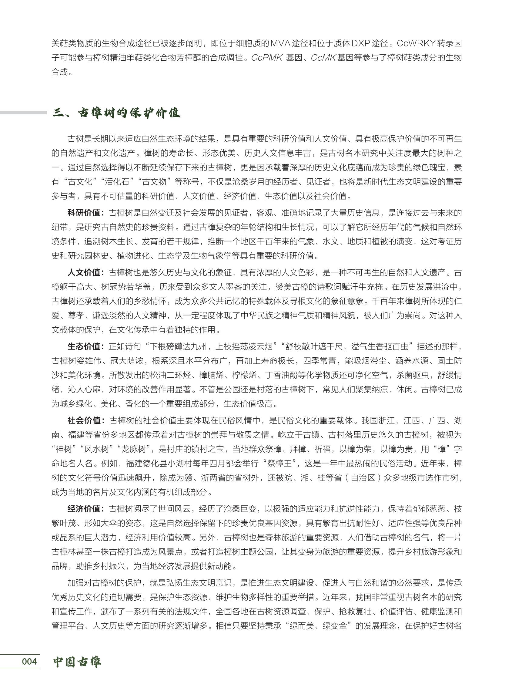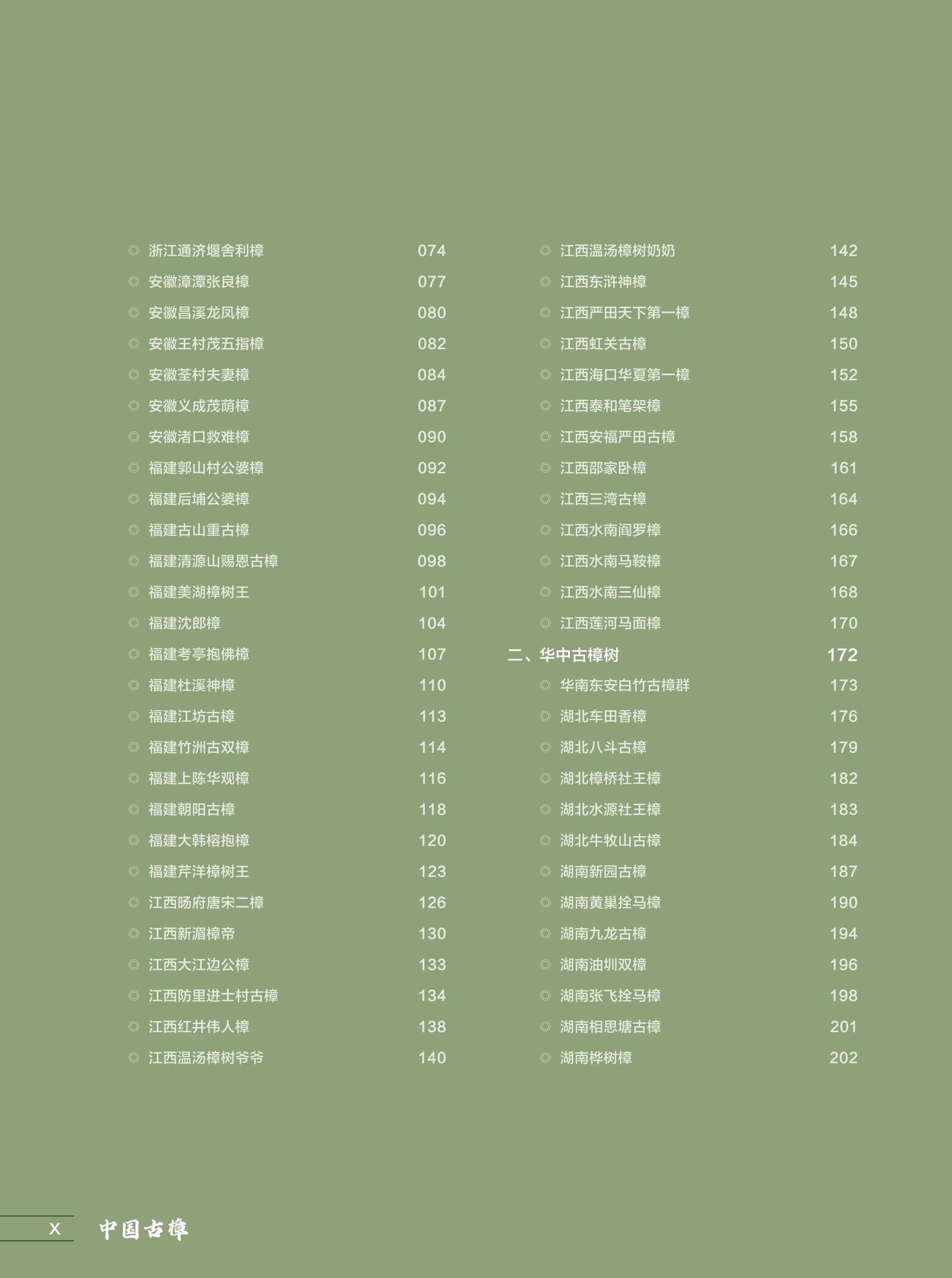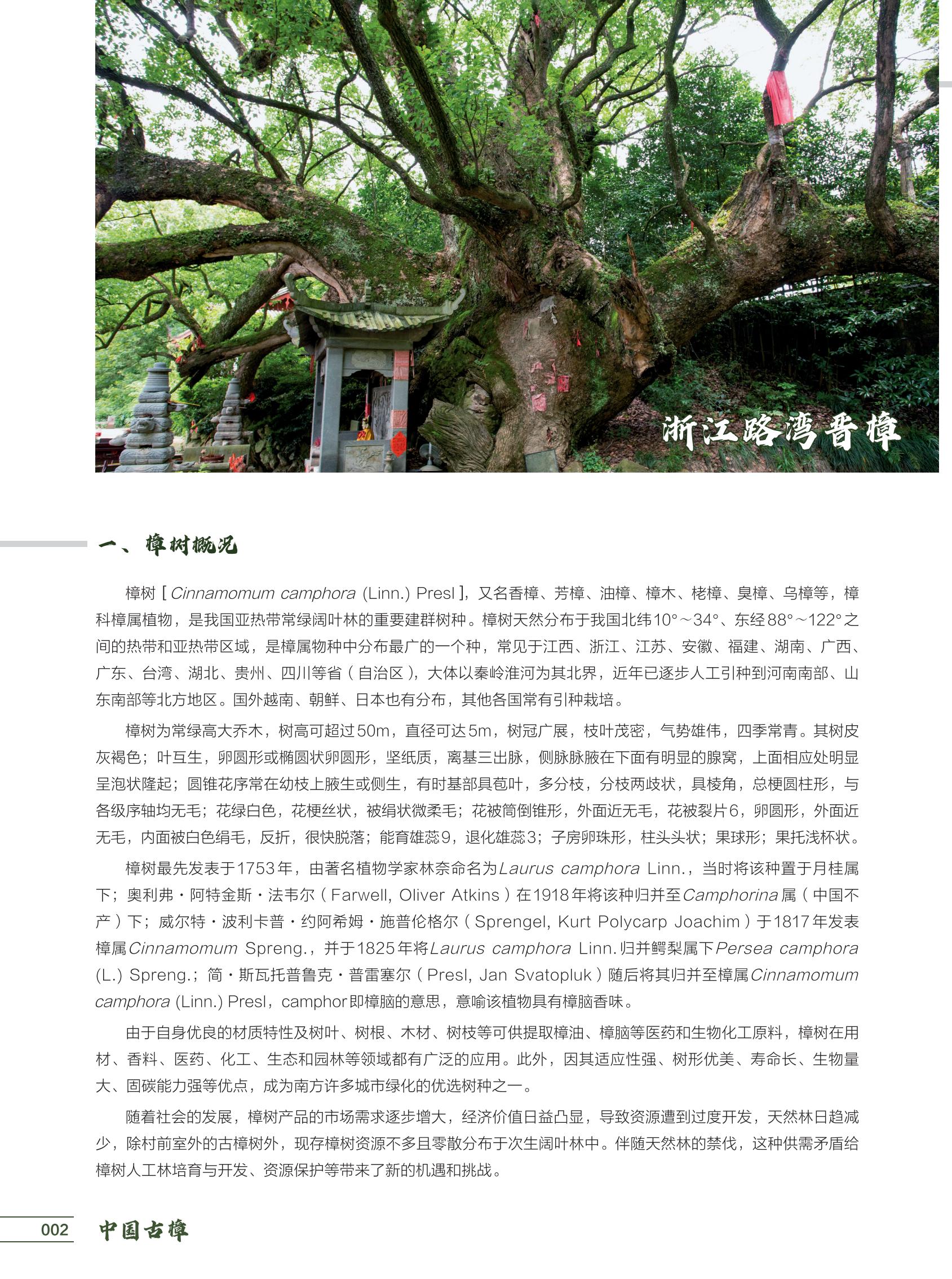 《中国古樟》用图文并茂的方式,以精美图片生动直观地展现出古樟树的神韵,展示其“精、气、神",除介绍古樟的地点、坐标、海拔以及形态特征外,还着墨于古樟树相关的历史典故、人文故事,引领读者在浓浓的墨香里畅游祖国大好河山,欣赏古樟树的豁达和坚强,在阅读中追溯古意,触动心灵,找回与古樟相连的温馨美好记忆和割舍不下的绵绵乡愁。
