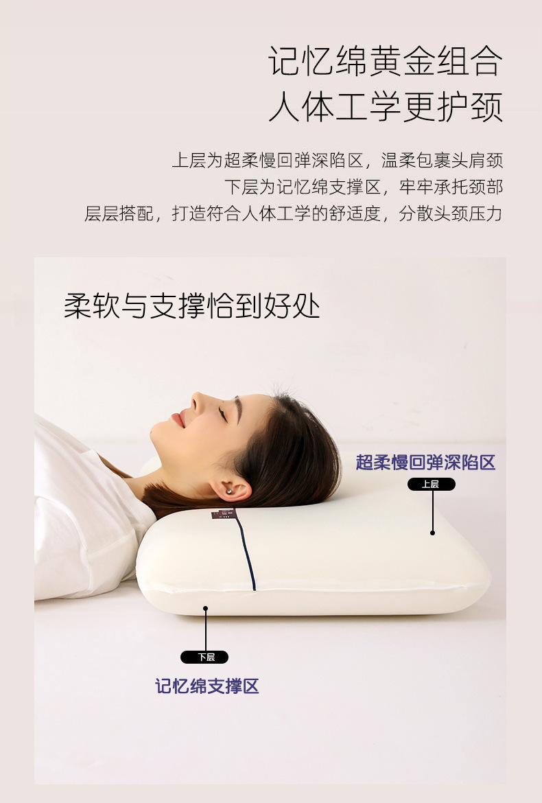 【睡到自然醒】零压深睡记忆枕 超柔慢回弹 舒适支撑 亲肤透气 享受整晚深度睡眠 精致礼盒