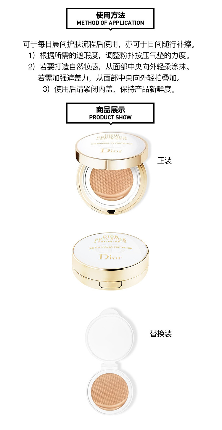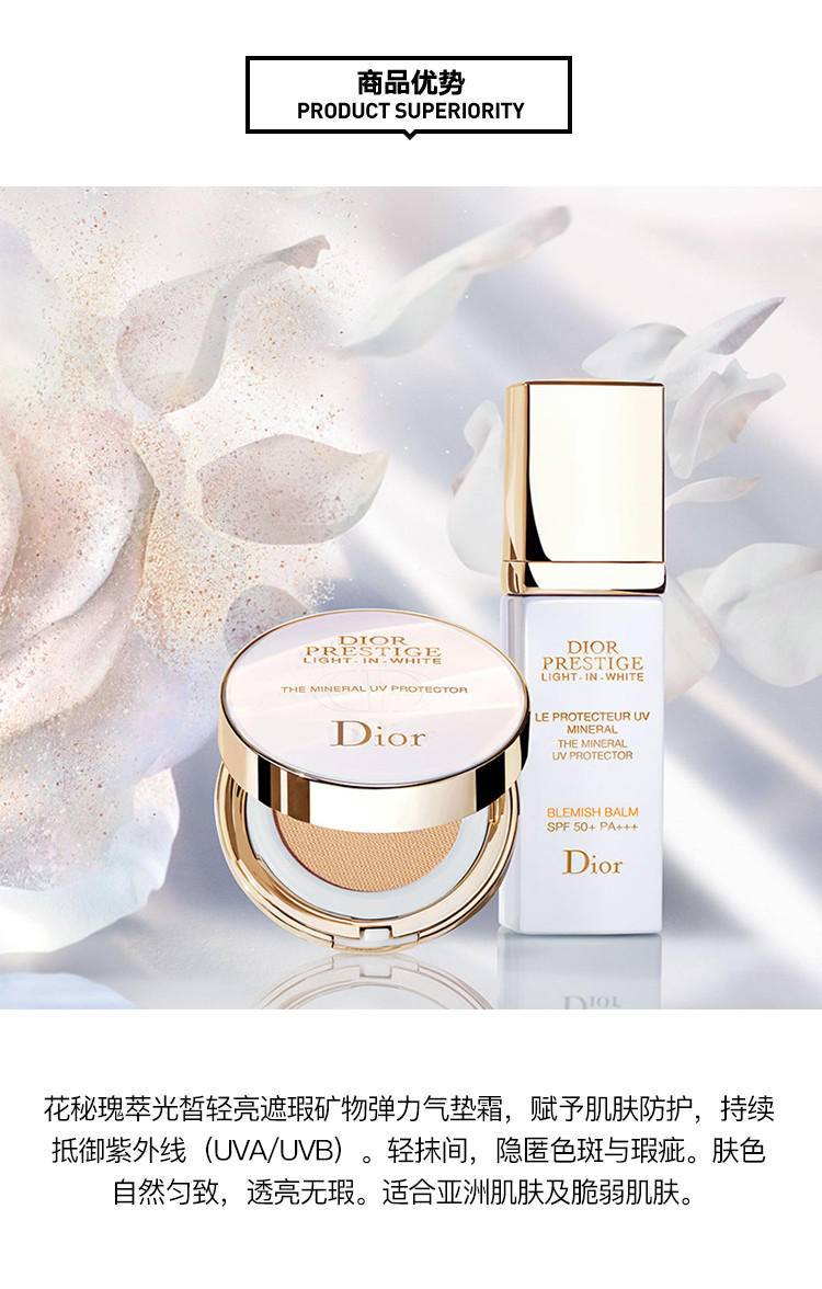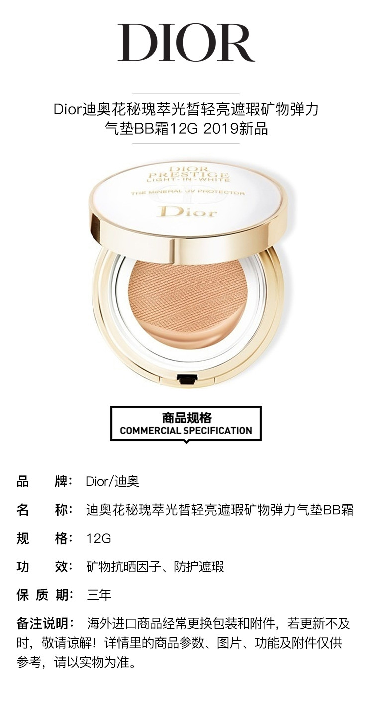 DIOR/迪奥 19新品 花秘瑰萃光皙轻亮遮瑕矿物弹力气垫BB霜12G