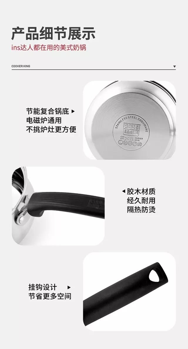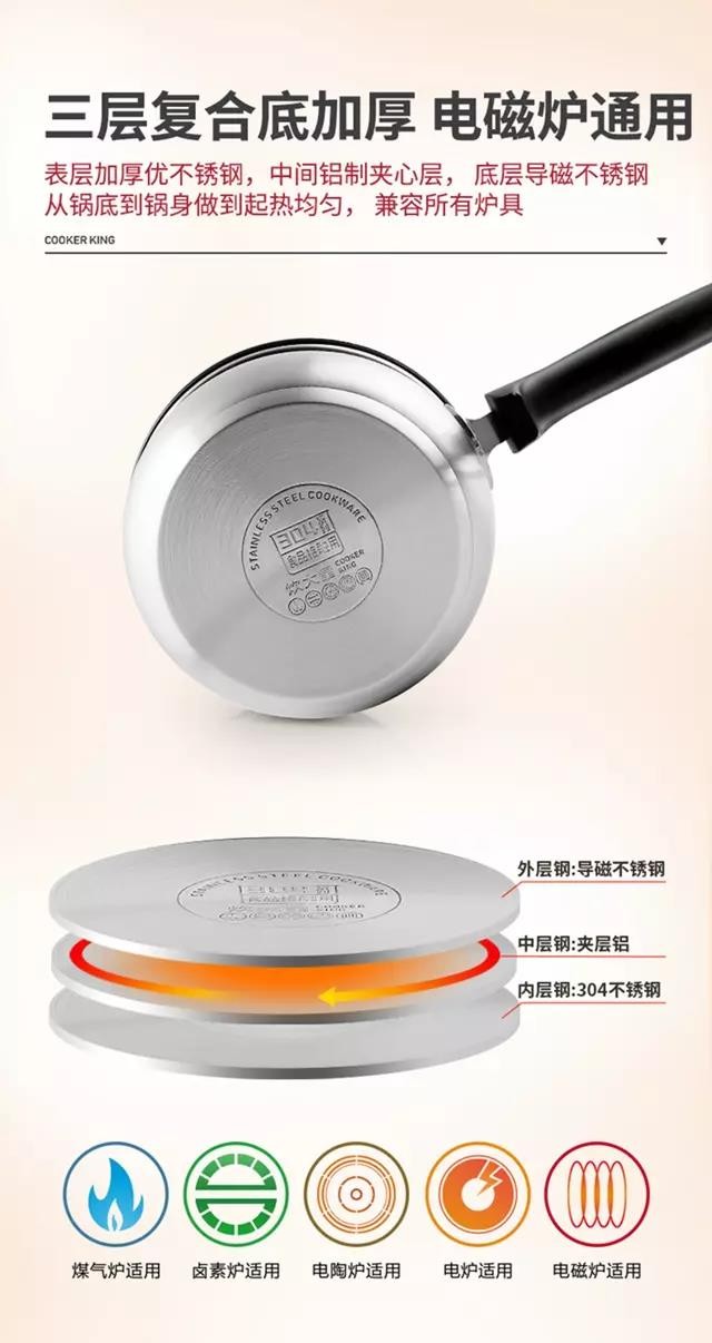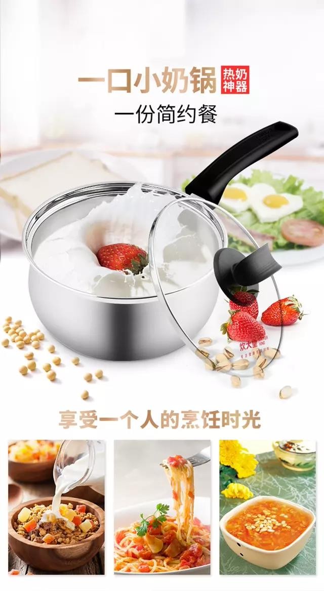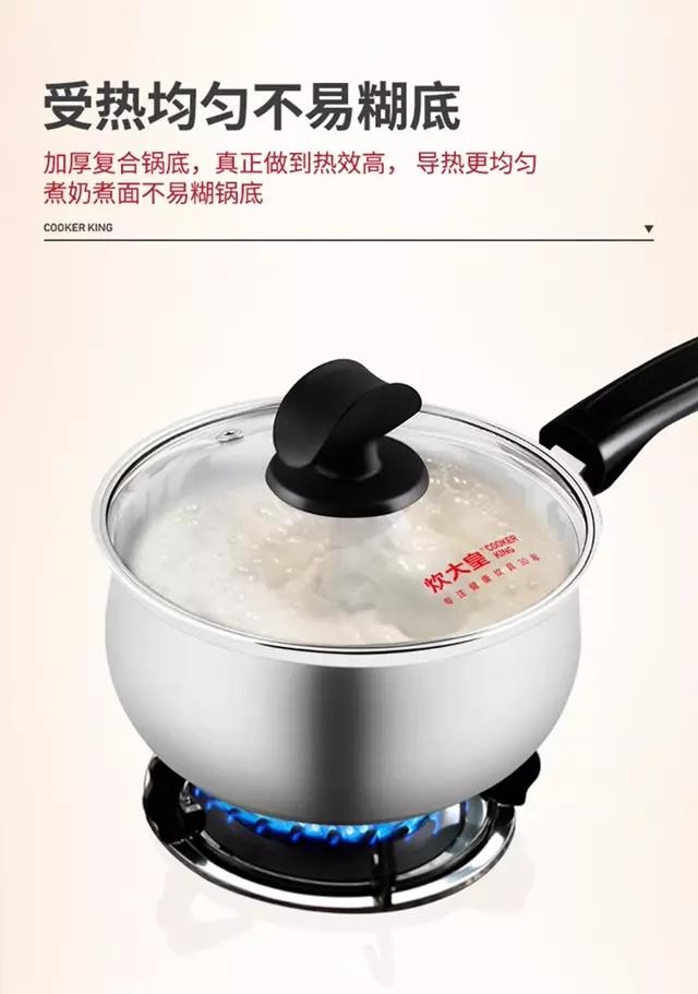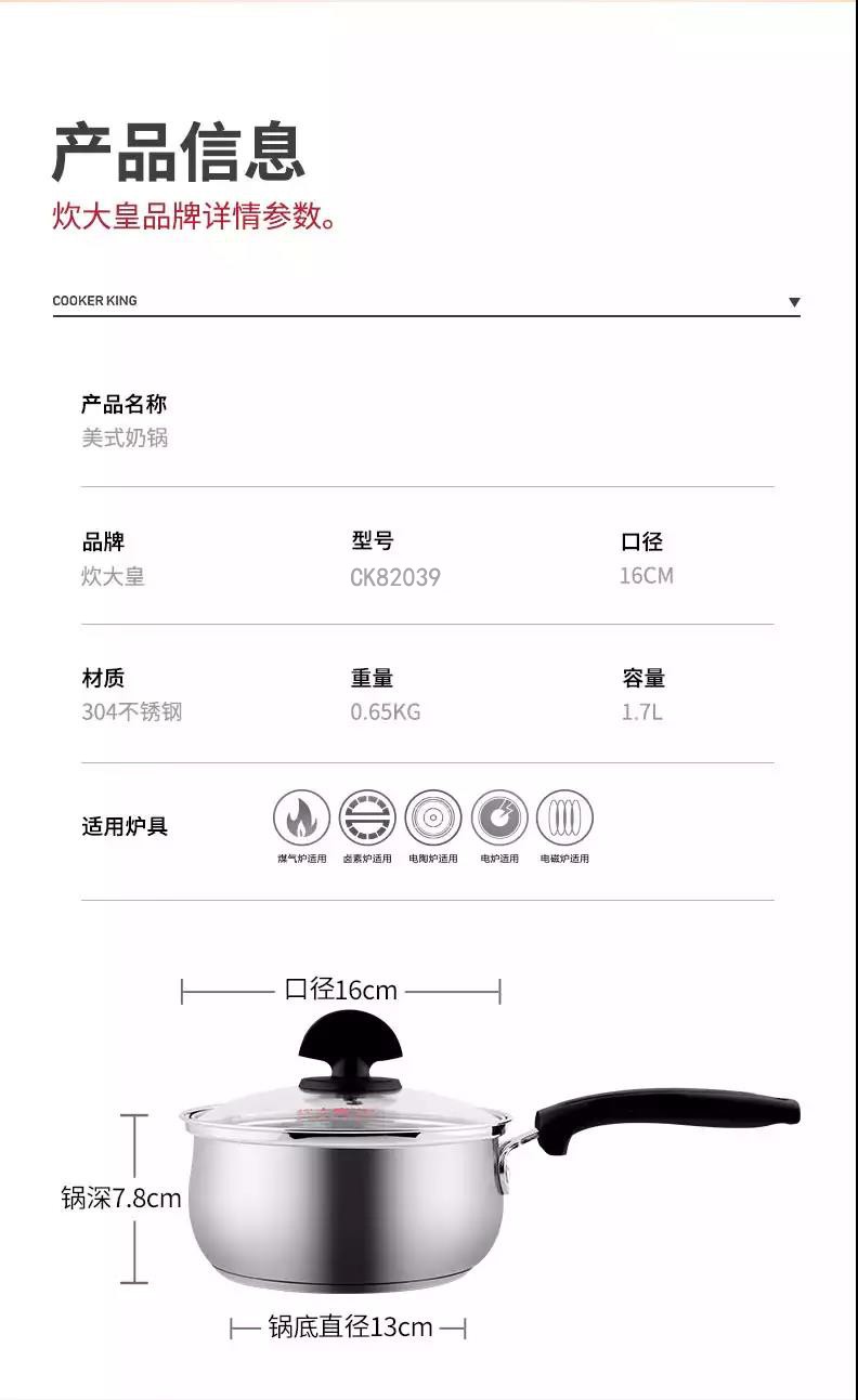 炊大皇 弧形不锈钢奶锅 煮面热奶 16cm CK82039