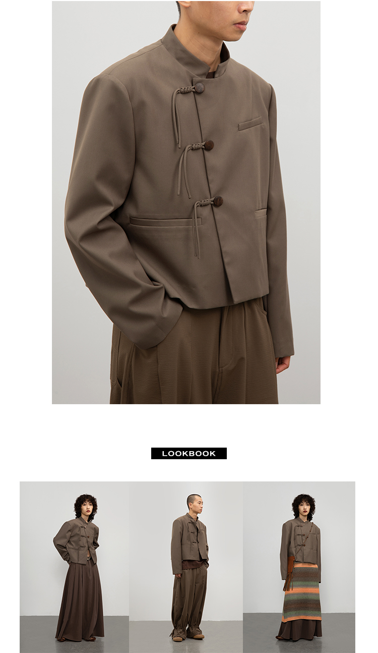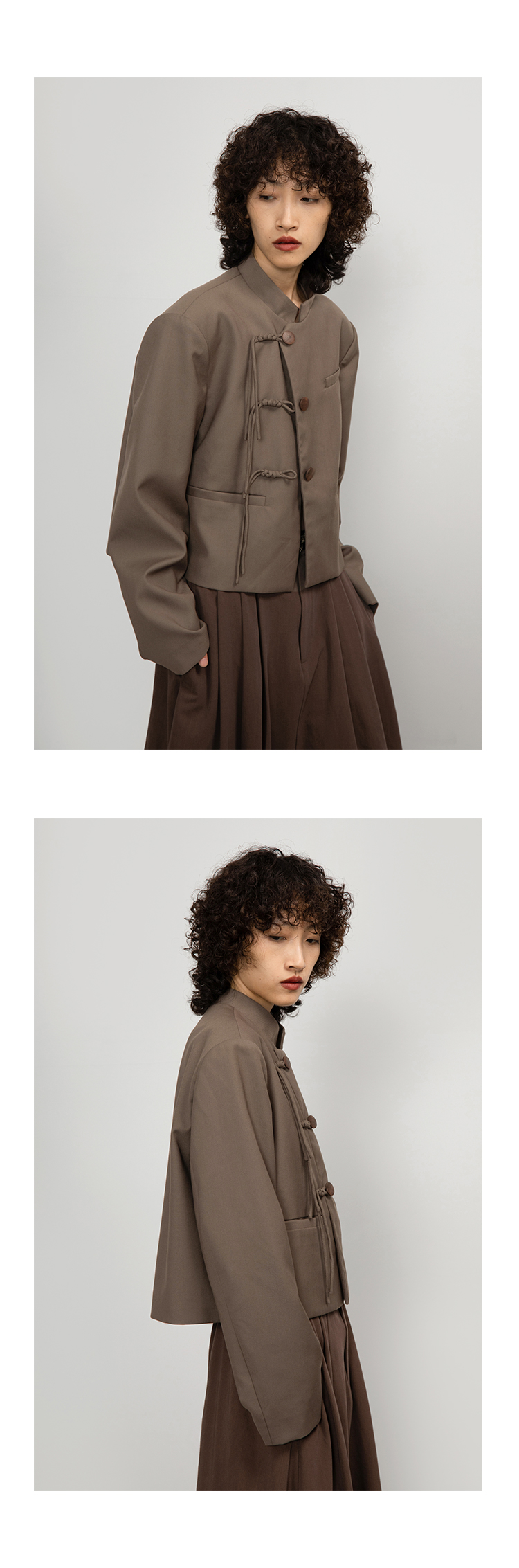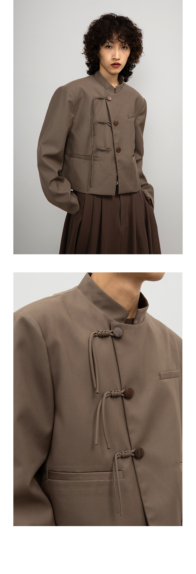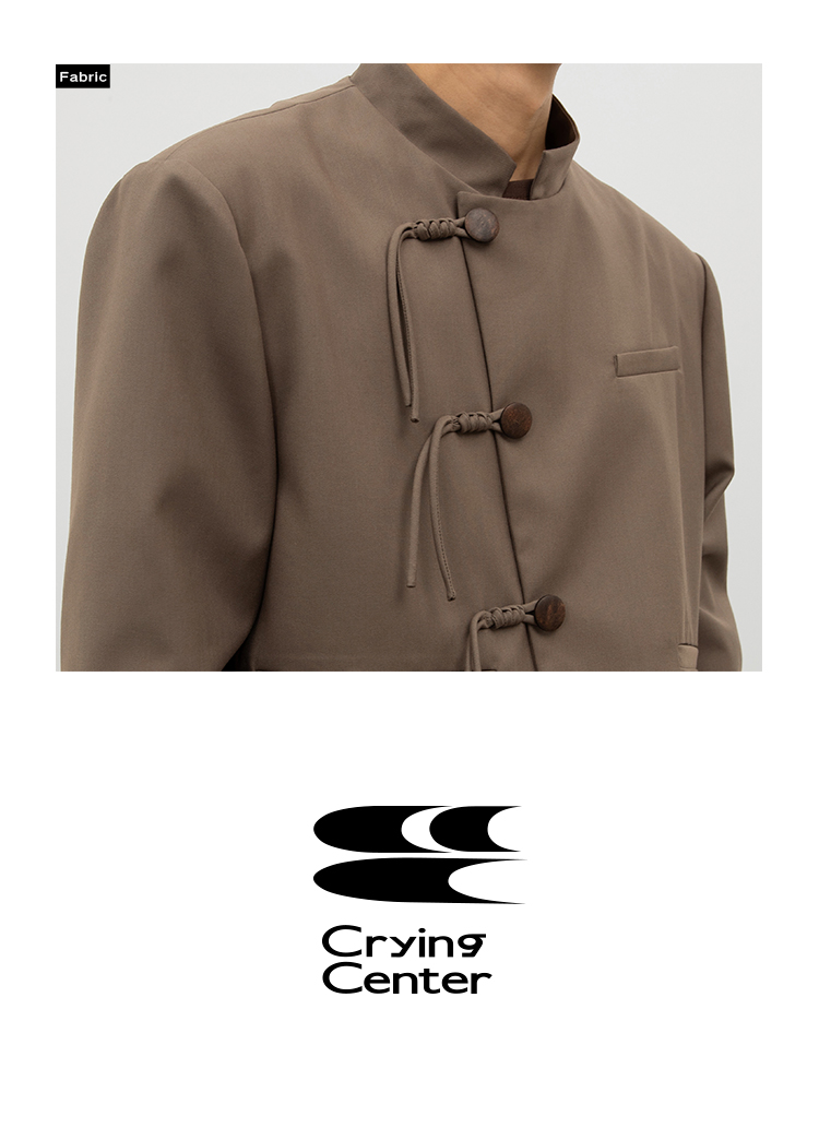 CryingCenter 檀棕色 新中式流苏盘扣无性别短款西装 哭喊中心