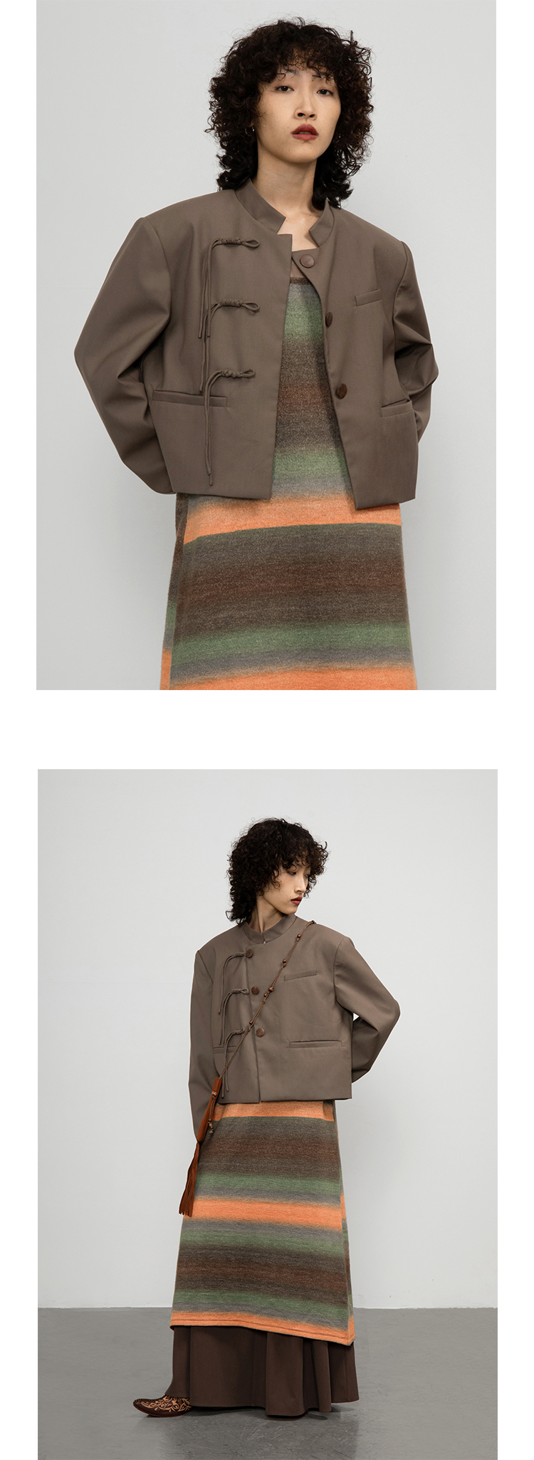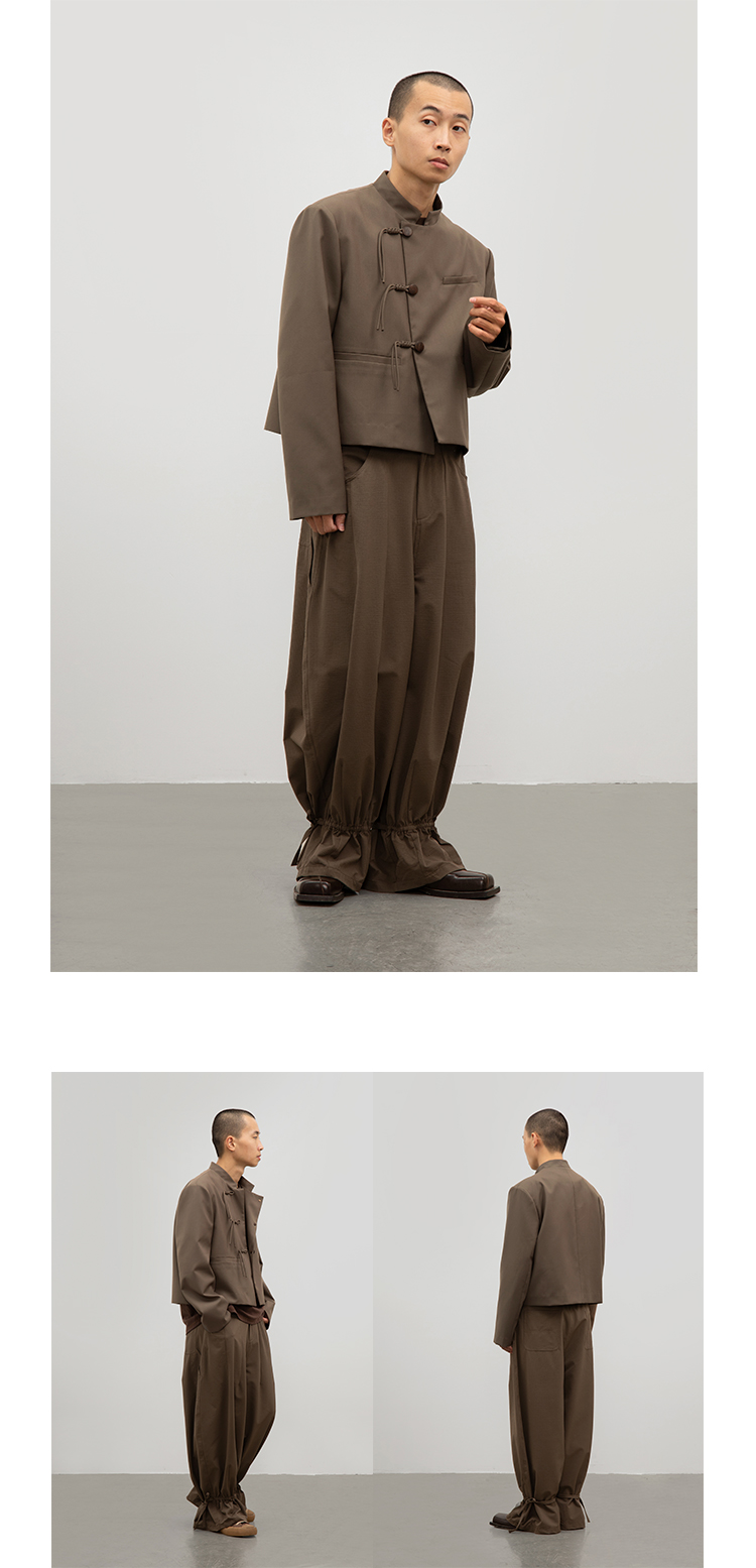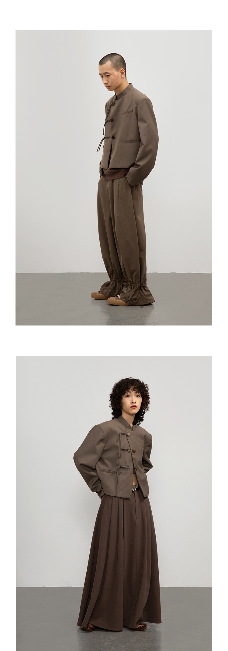 CryingCenter 檀棕色 新中式流苏盘扣无性别短款西装 哭喊中心