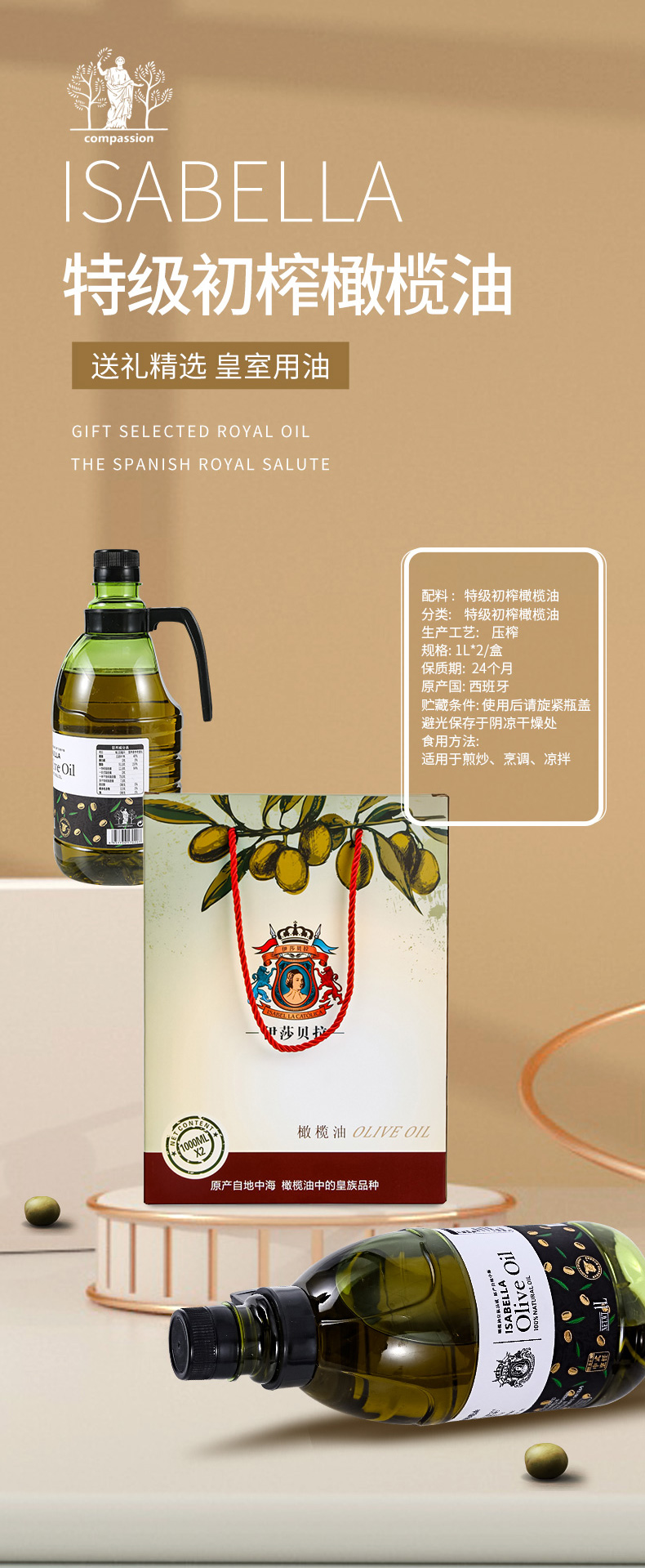 伊莎贝拉 ISABELLA-合家团圆 特级初榨橄榄油1L*2
