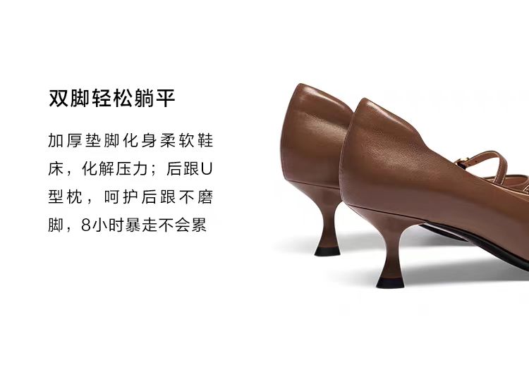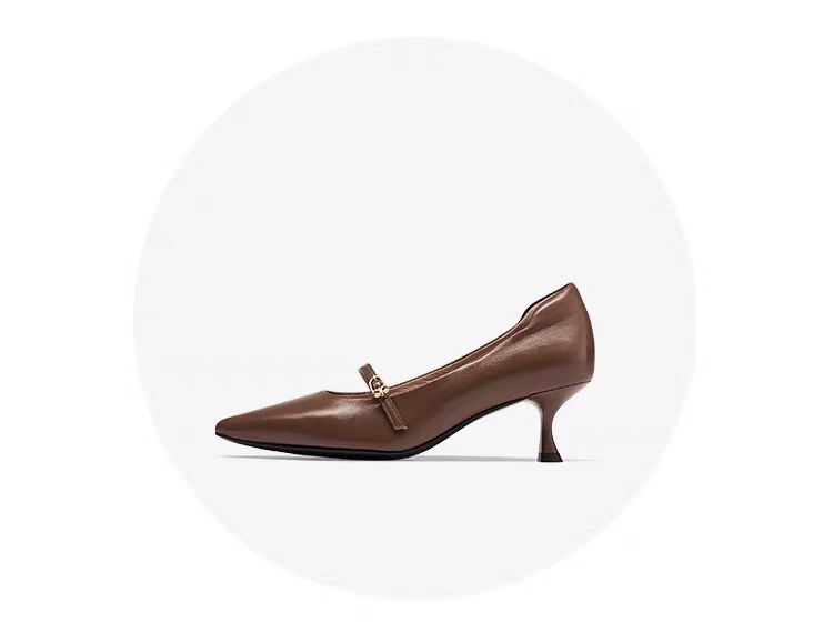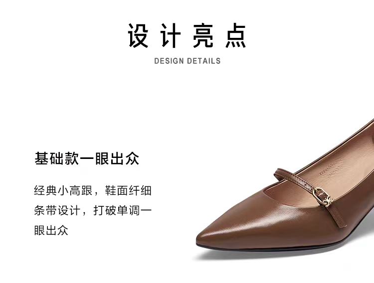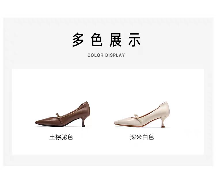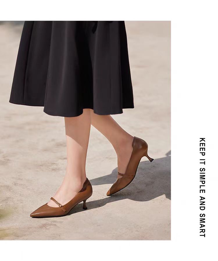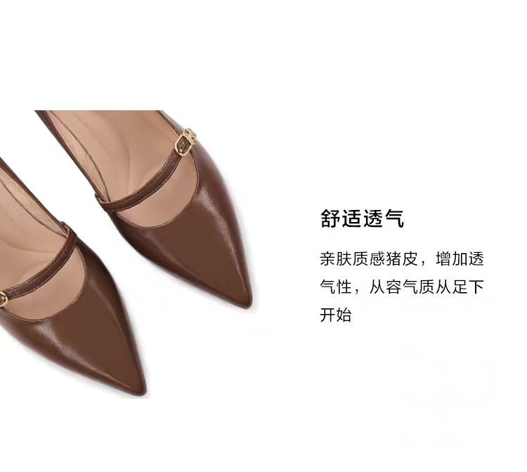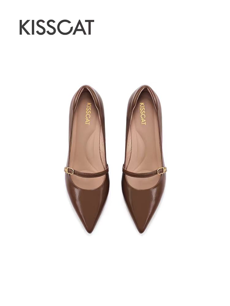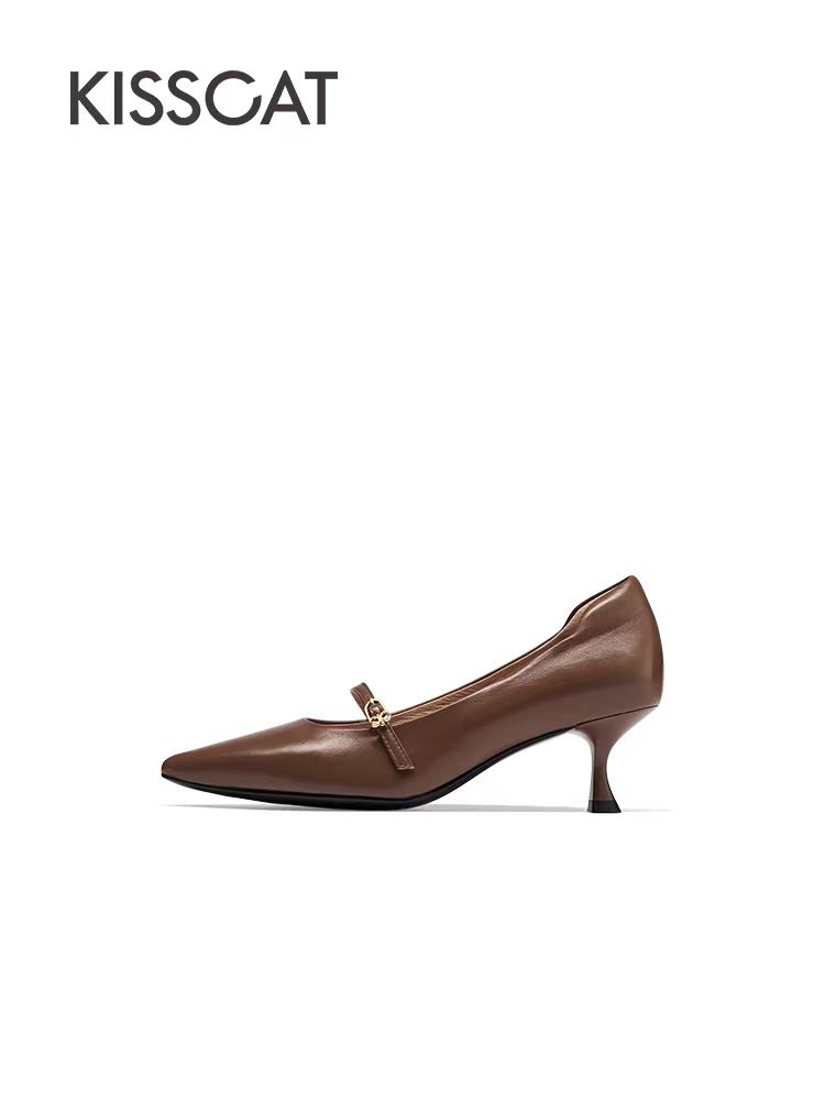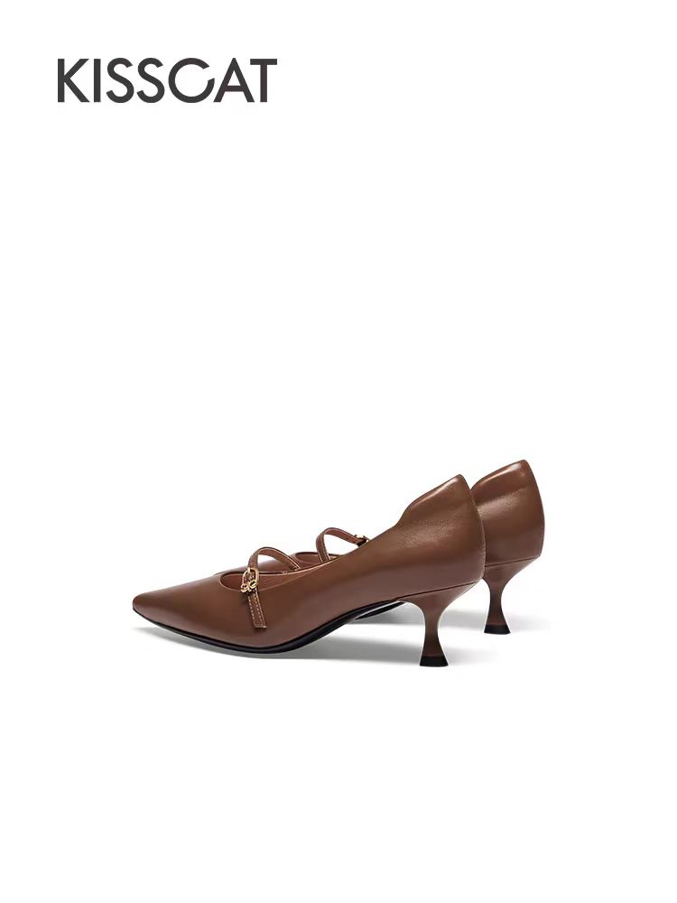 KISSCAT接吻猫24年新款尖头高跟细跟真皮气质单鞋