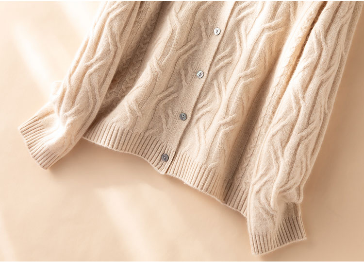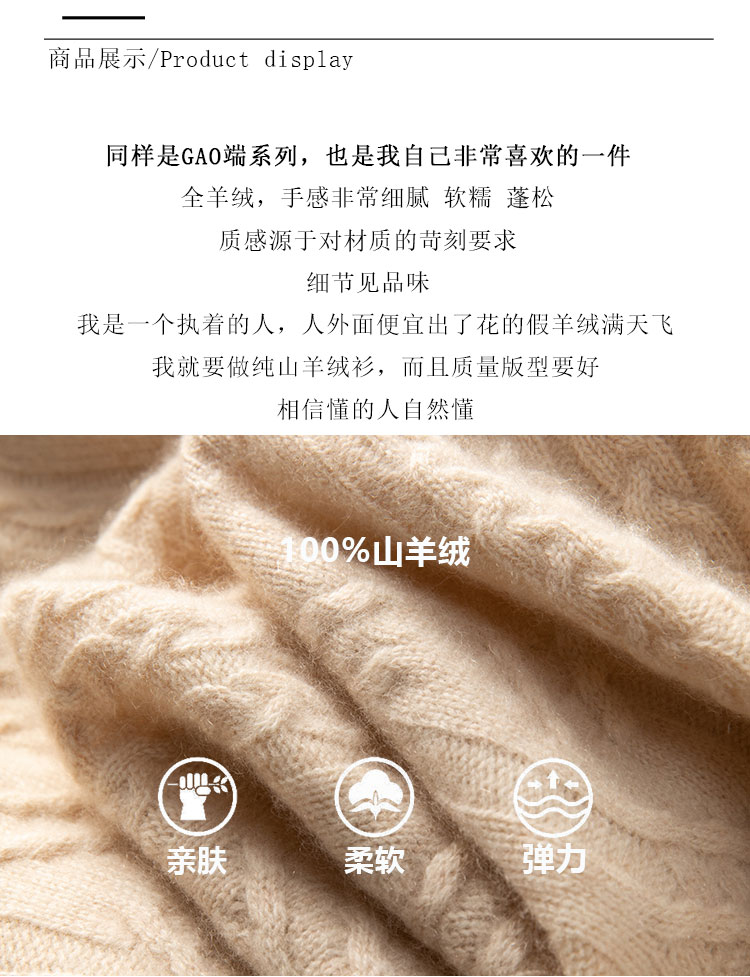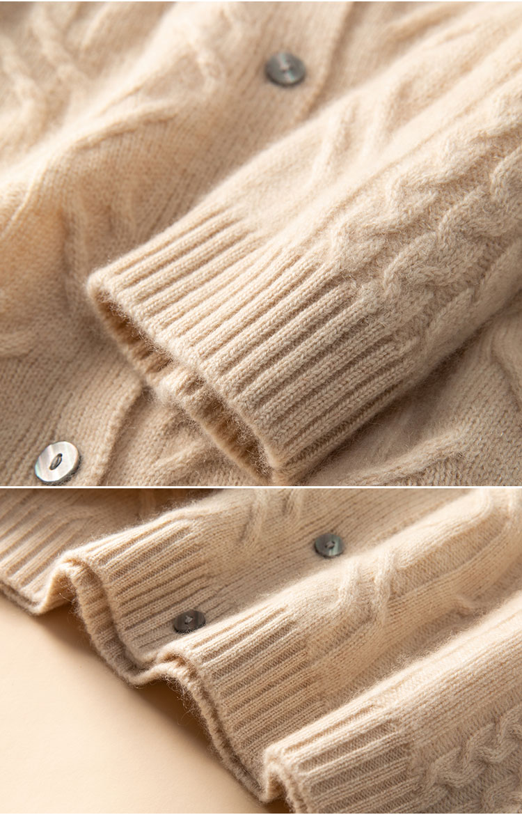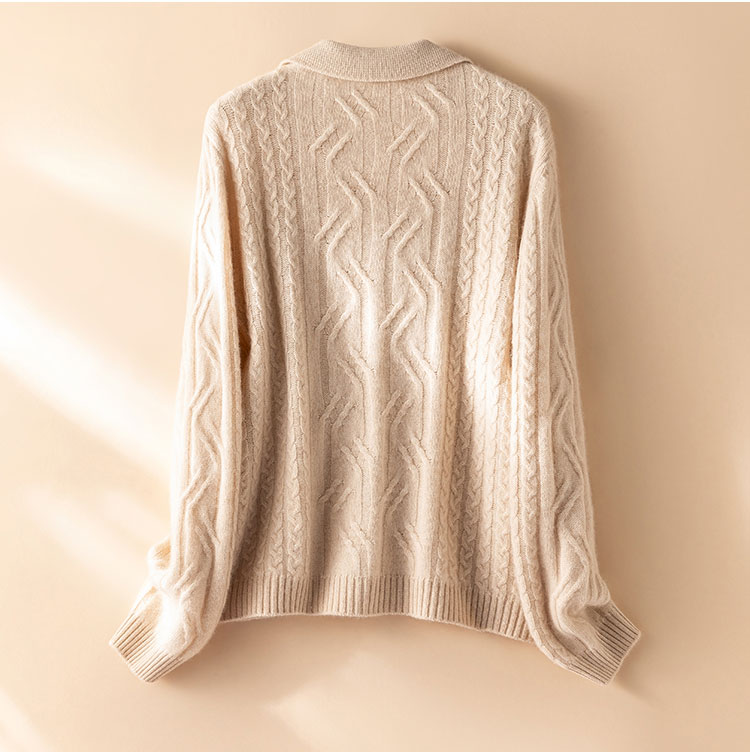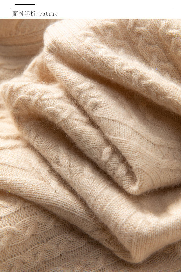 温婉如玉~100%纯山羊绒衫女剪刀领加厚绞花外套百搭毛衣